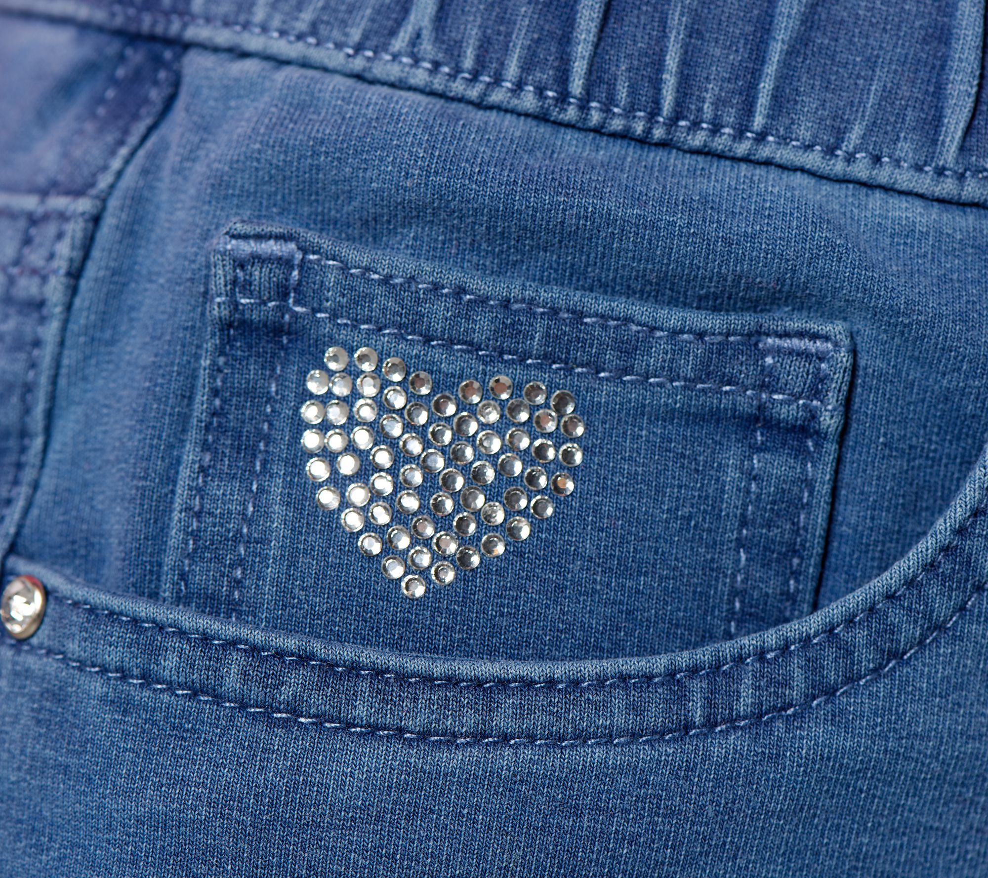 • Features: culotte style, pull on, elastic waist, two front pockets, coin pocket with signature heart, two back pockets, back yoke, crop length