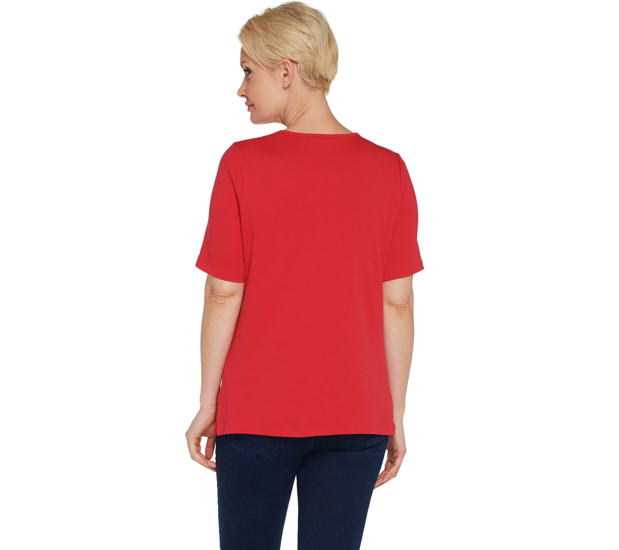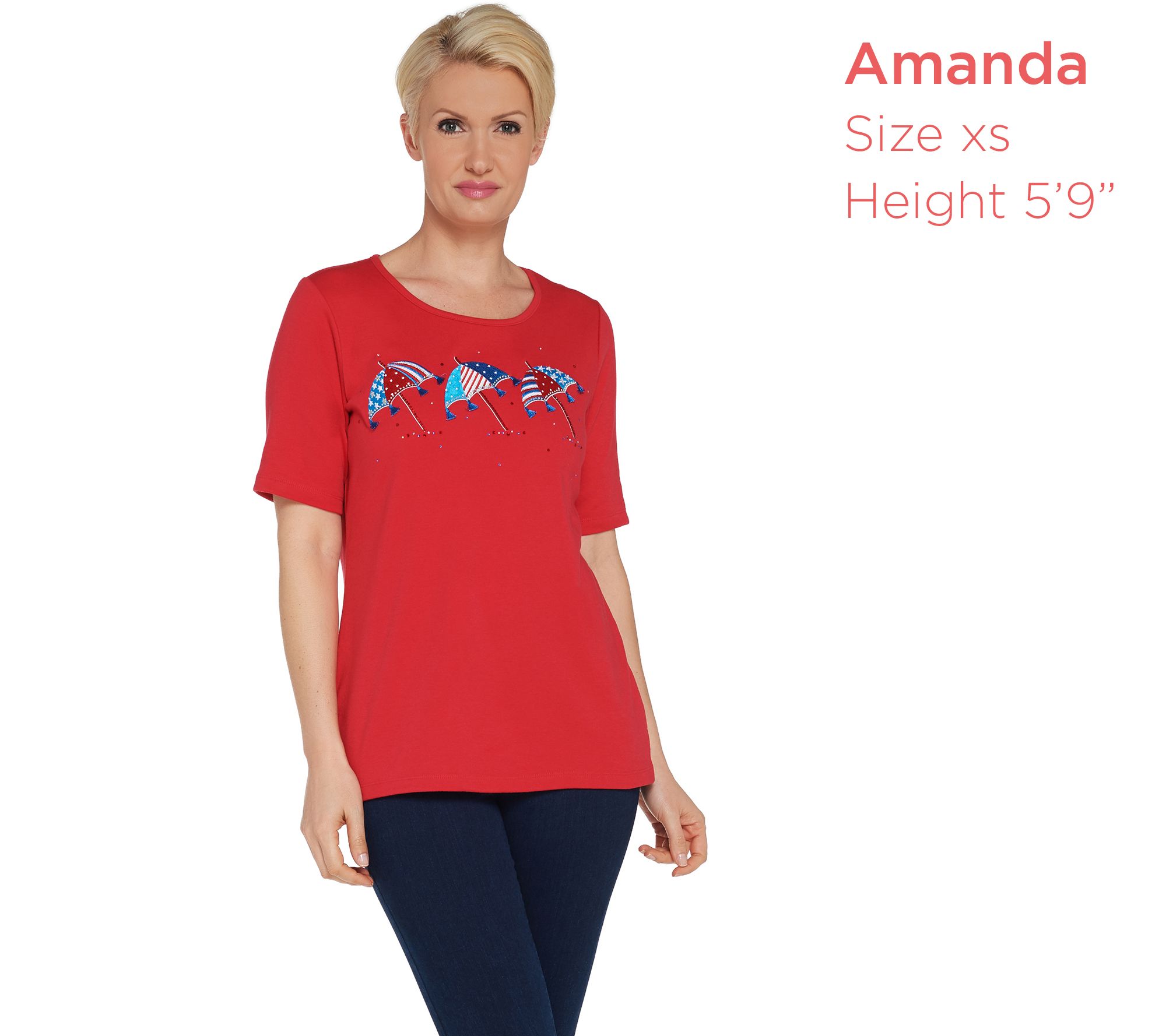 "As Is" Quacker Factory Embroidered Elbow Sleeve T-Shirt