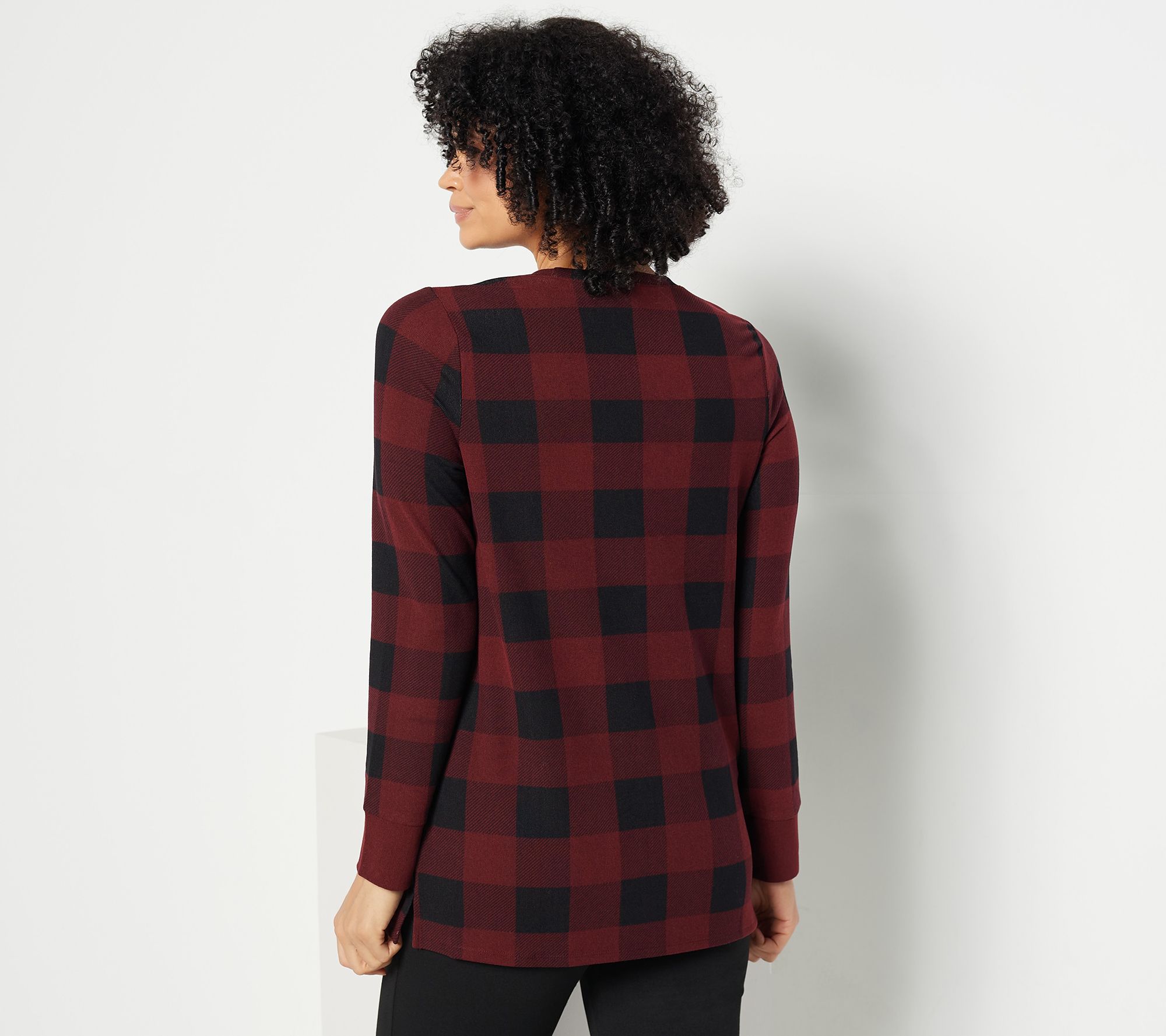 "As Is" Quacker Factory Fall Embellished Buffalo Plaid Soft Knit Tunic