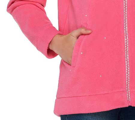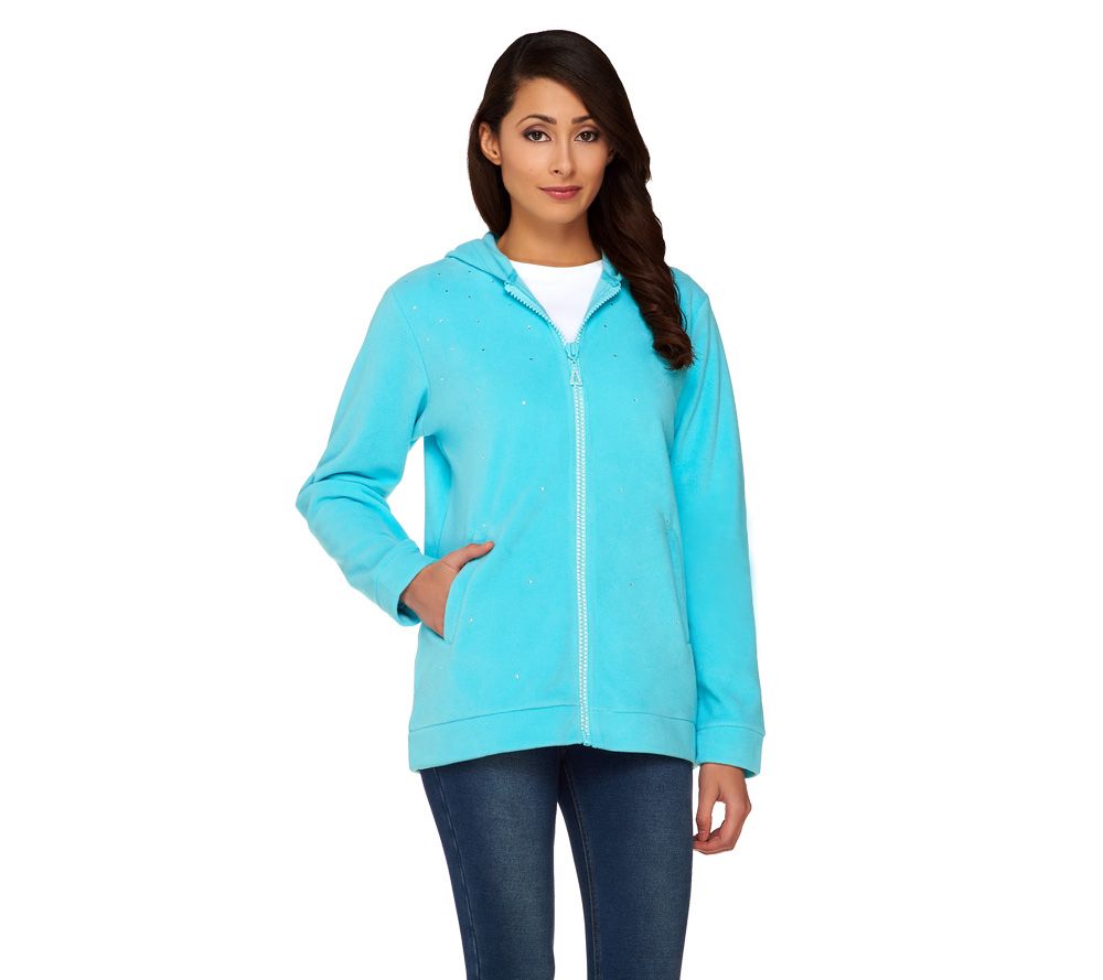 "As Is" Quacker Factory Fleece Hoodie with Rhinestone Zipper