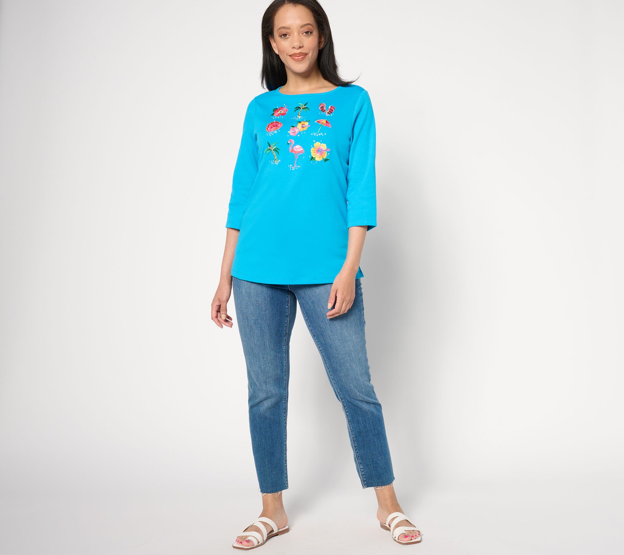 A fun and playful embroidered detail takes center stage on this boatneck top. Pair it with your favorite denim and sneakers for a whimsical look that's perfect for a leisurely Saturday spent strolling through town. From Quacker Factory.