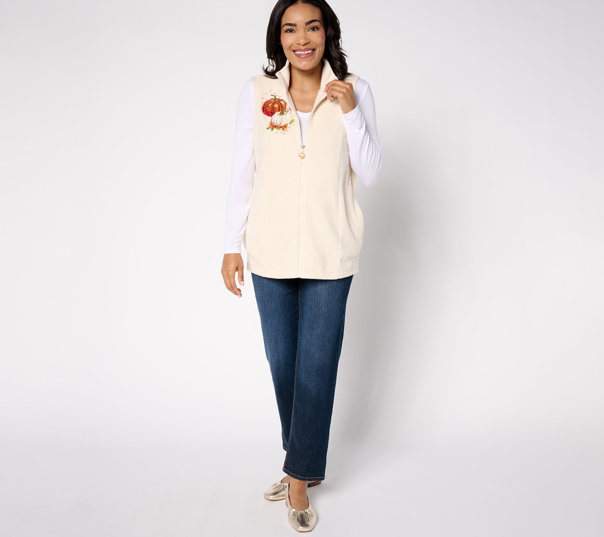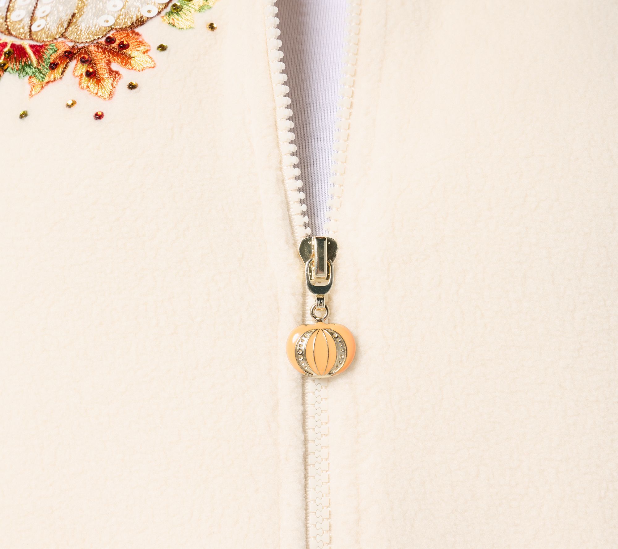 Are you a pumpkin-loving, leaf-crunching, all-things-autumn kind of gal? Then you've probably fallen in love with this harvest-themed vest at first sight! Embrace your fave time of year and do fall y'all wrapped in this cozy embroidered and embellished fleece vest. It's gourd-geous!! From Quacker Factory®.