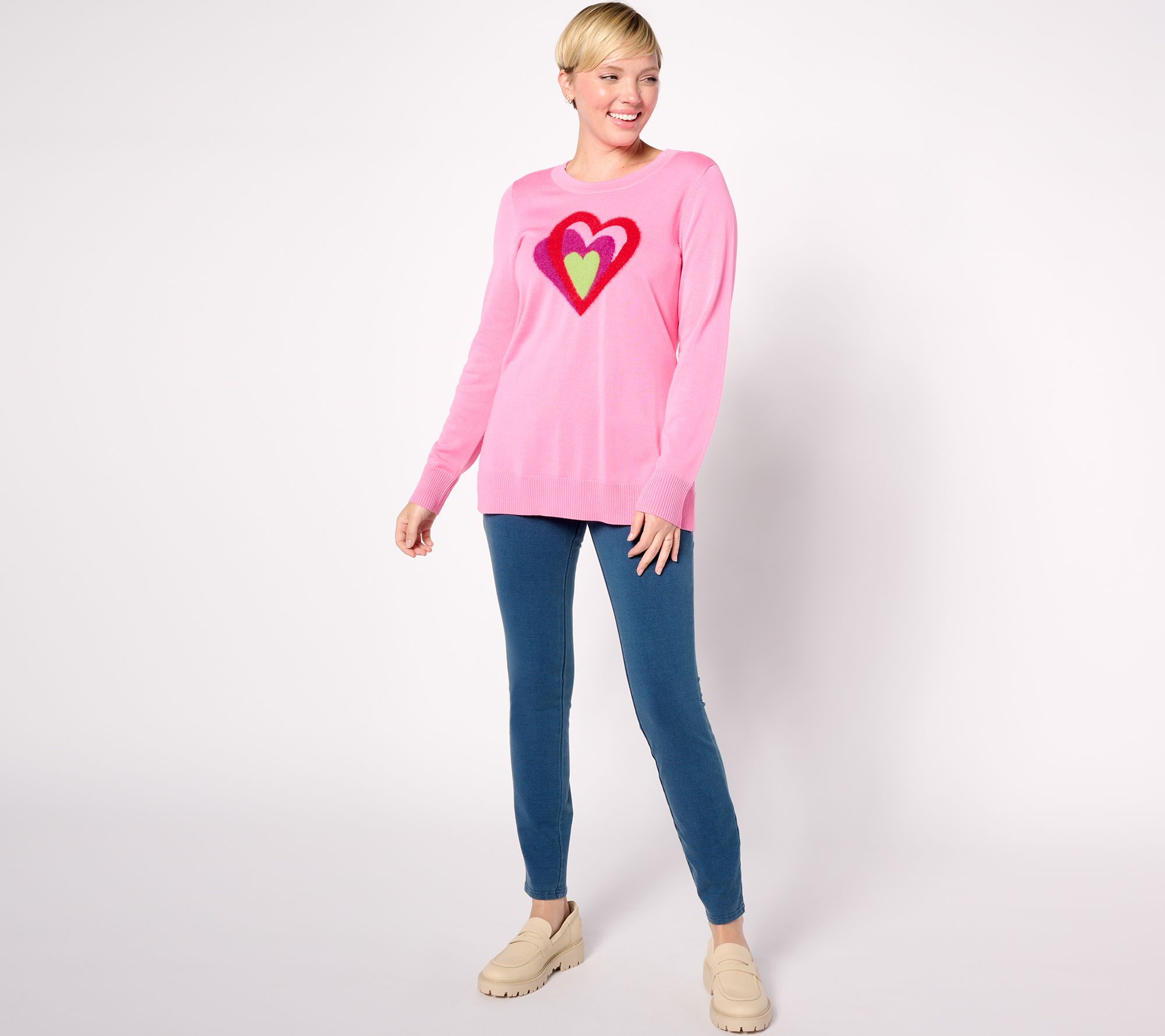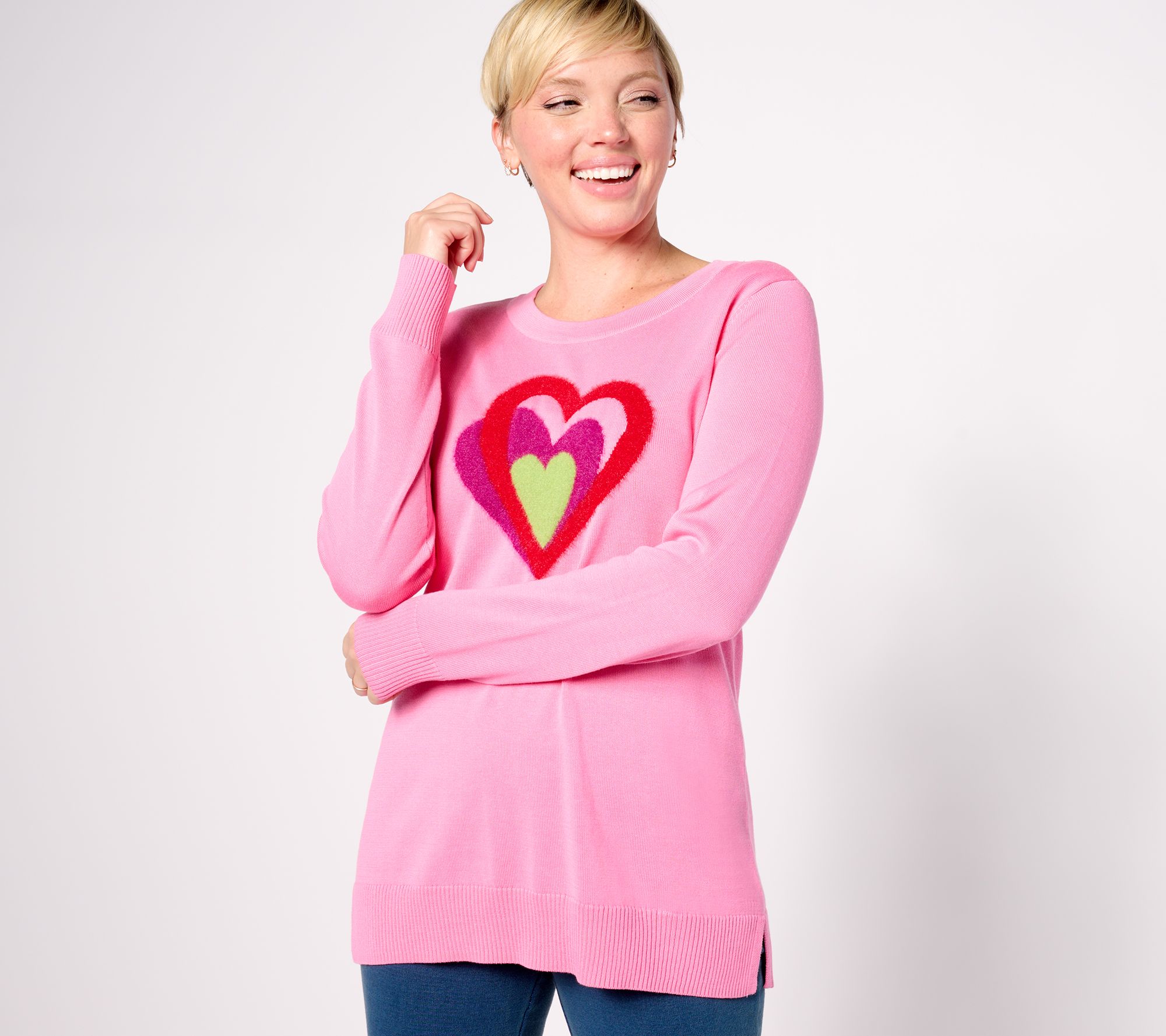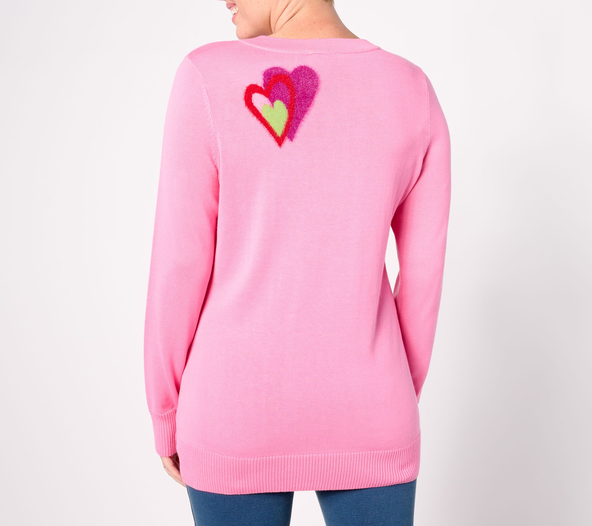 "As Is" Quacker Factory Hearts A Bursting Intarsia Long Sleeve Sweater