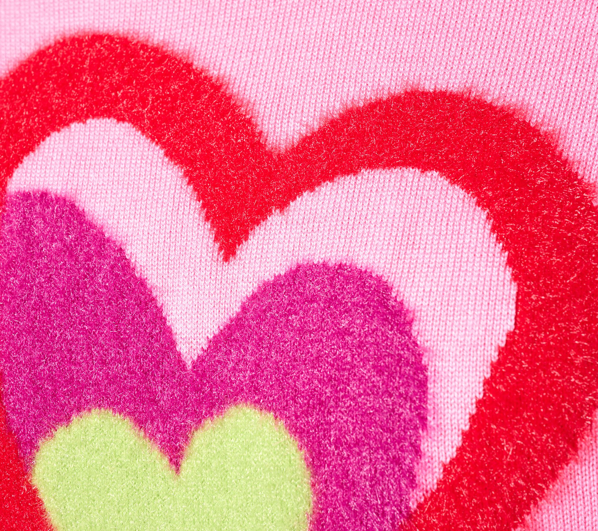 • Features: bursting hearts, long sleeves, round neck, side vents