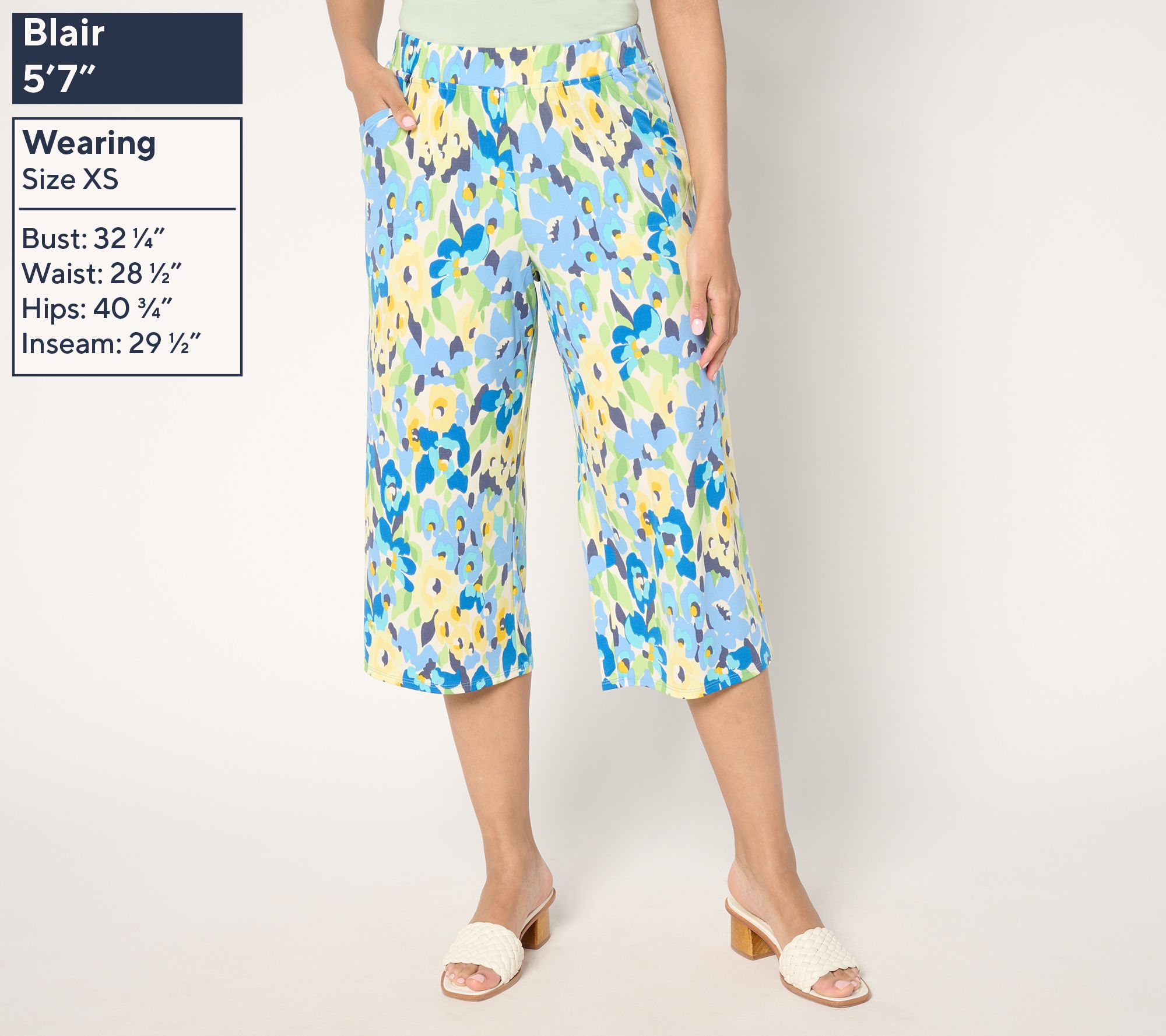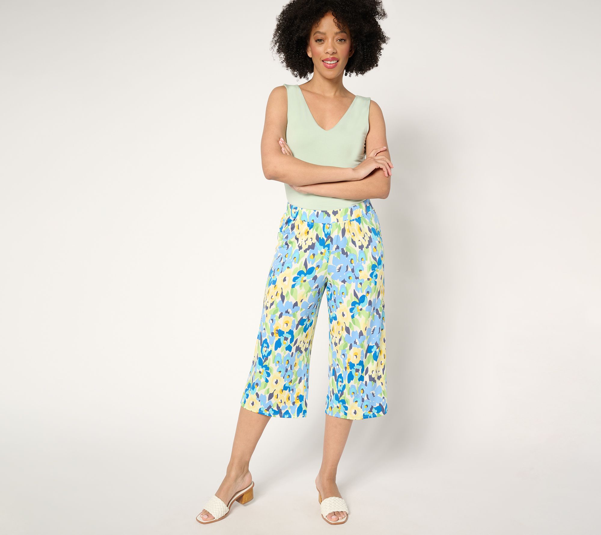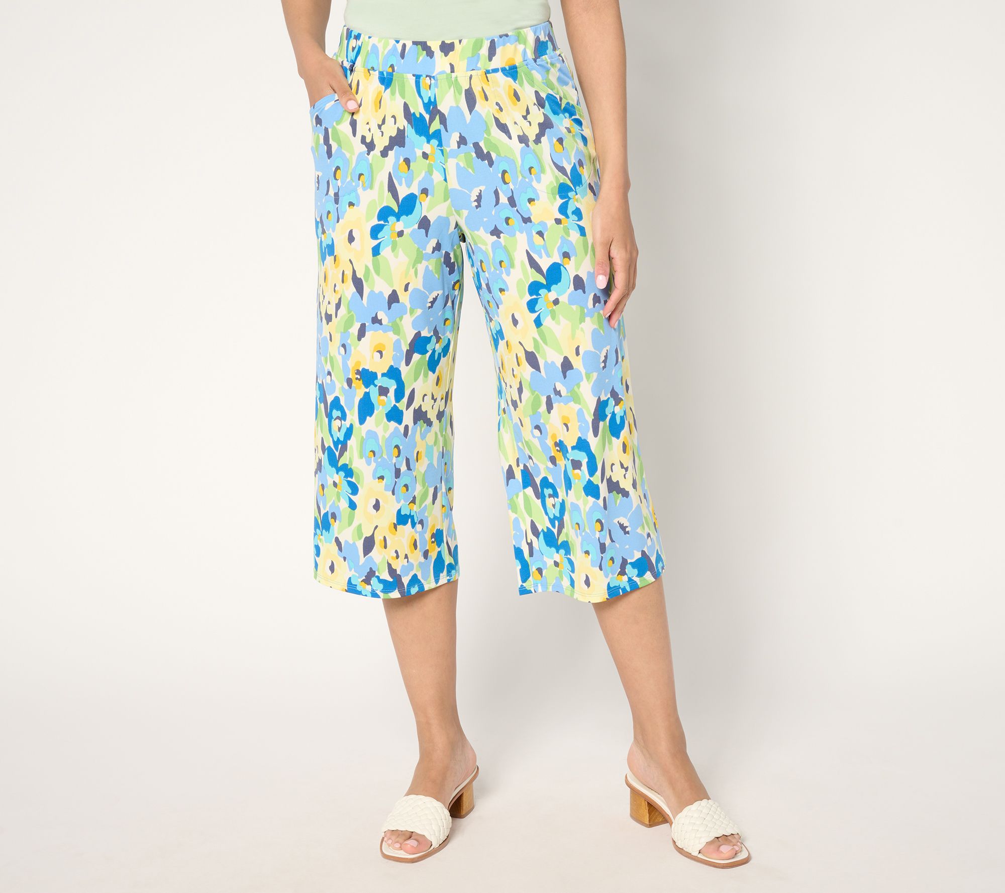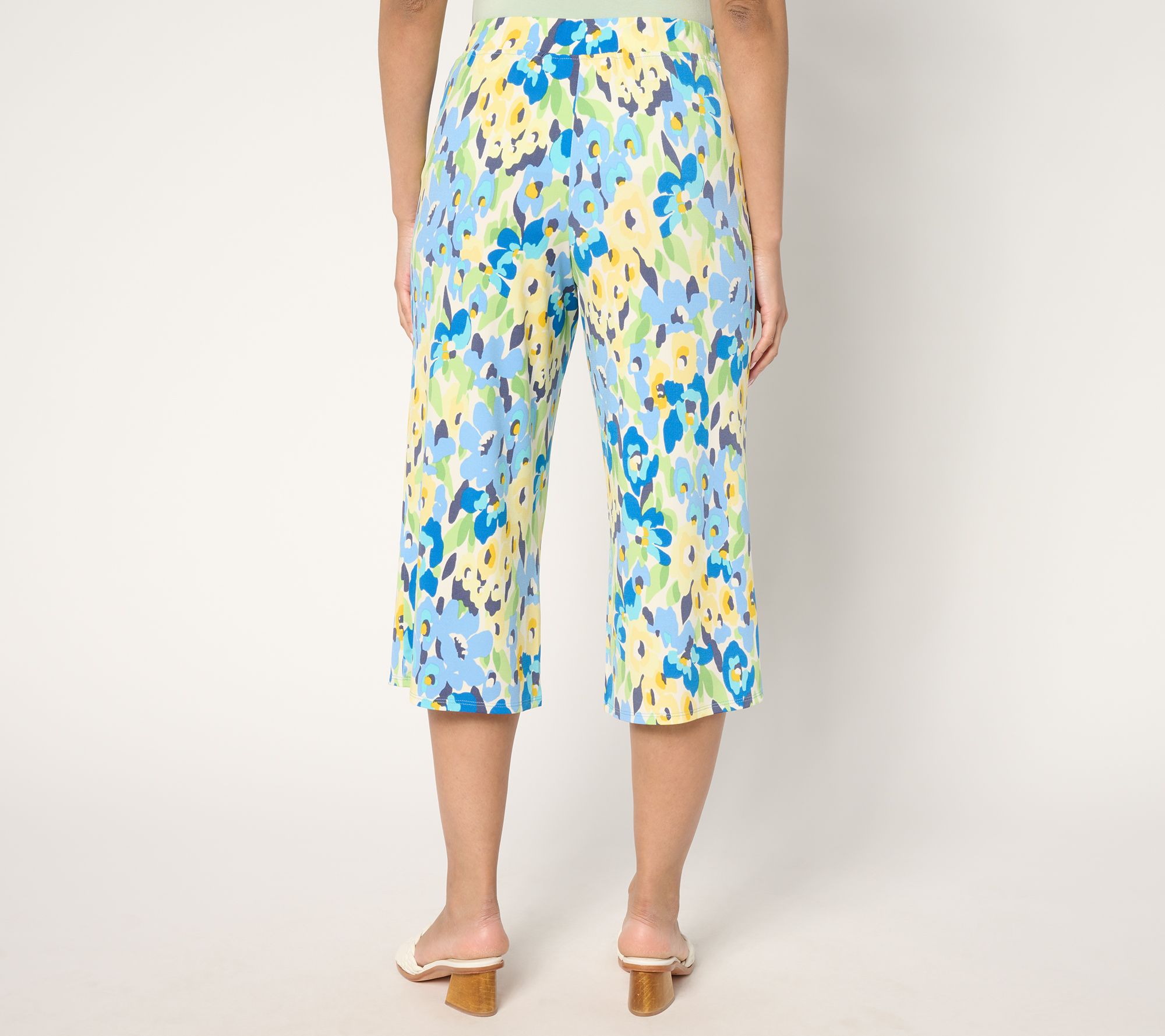 "As Is" Quacker Factory Hello Spring Floral Printed Knit Cropped Pants