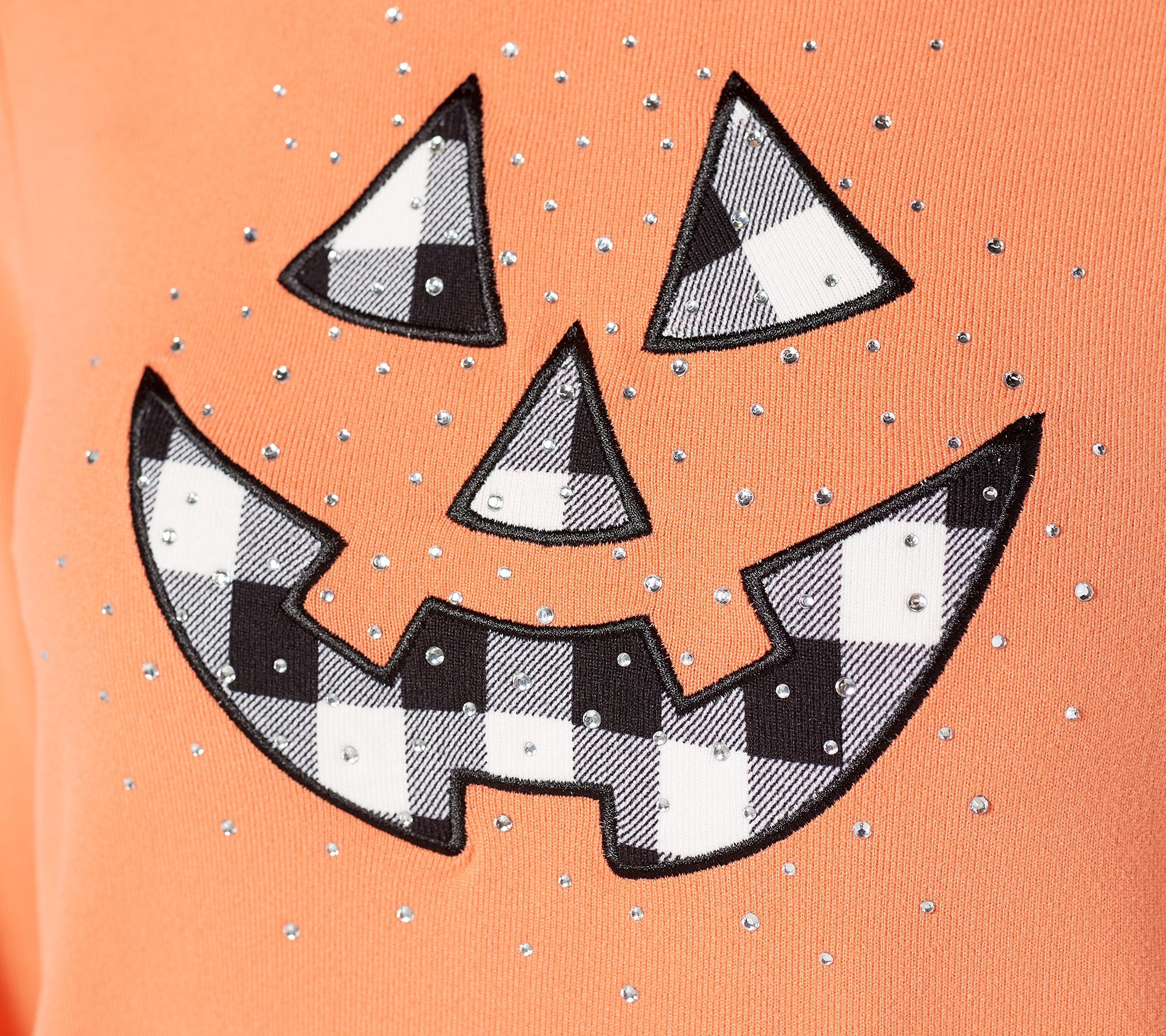 Slip on this cozy embellished top and taste the candy corn (and smell the caramel apple)! Things are getting spooky (finally!), and we think you just found the perfect shirt to carve pumpkins in. From Quacker Factory®.
