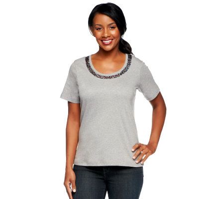 • T-shirt: short sleeves, sequin embellishment