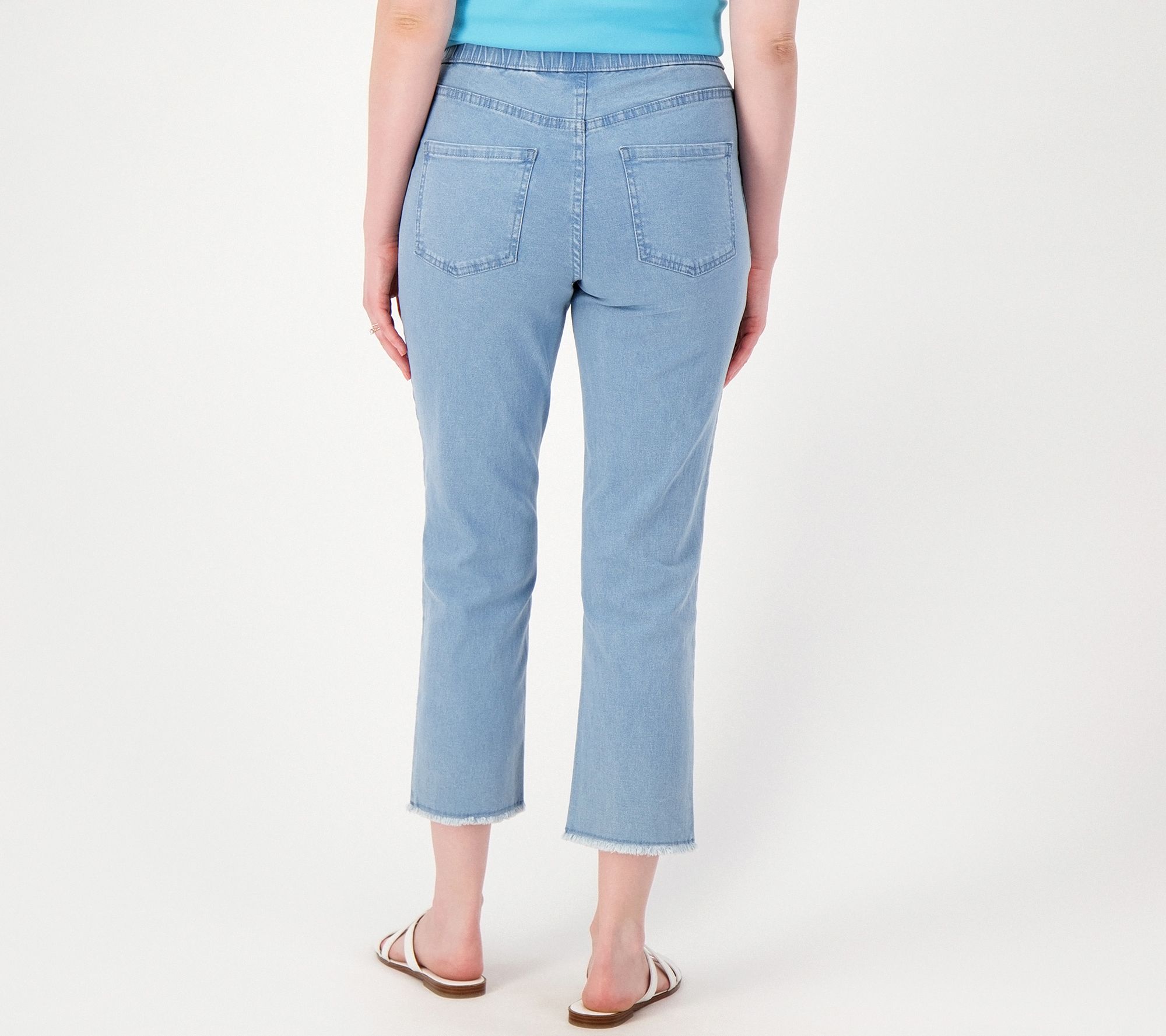 Furnished with frayed hem and cropped for comfort in the warmer weather, these straight leg jeans exude a carefree casual vibe and can be paired with any tee, tunic, or top. From Quacker Factory®.