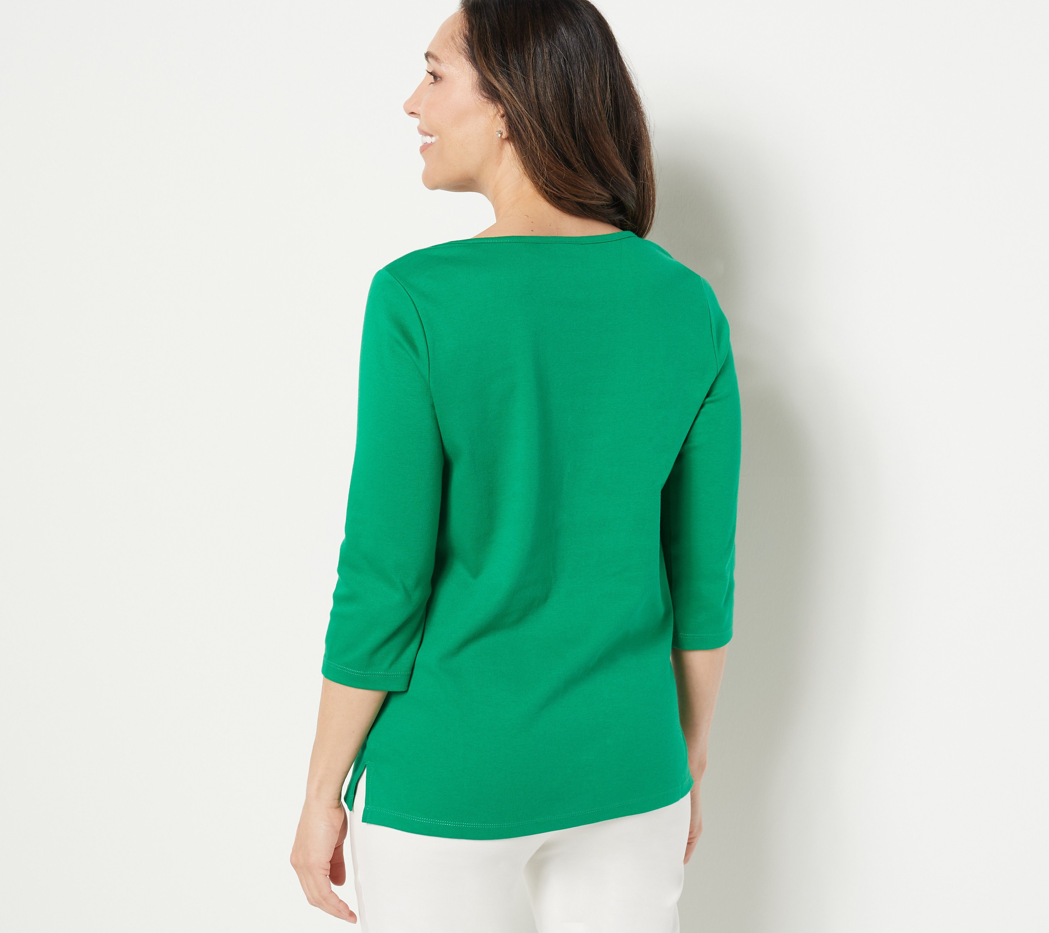 "As Is" Quacker Factory Set of 2 Polka Dot & Solid Boat Neck 3/4 Sleeve Top