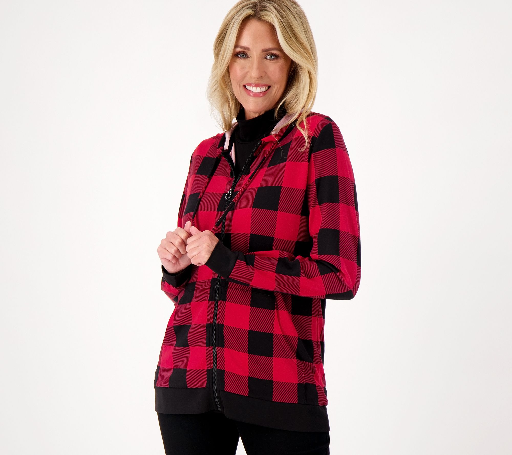 Fall is right around the corner. Welcome back, pumpkin spice everything, apple picking, and evening bonfires. You know what makes all those things even better? A comfy, chic hoodie that fits in with the season. A-hem! Like this plaid hoodie. From Quacker Factory®.