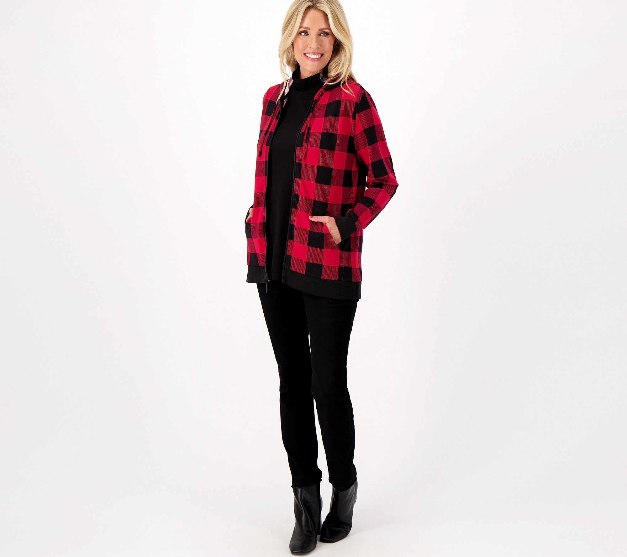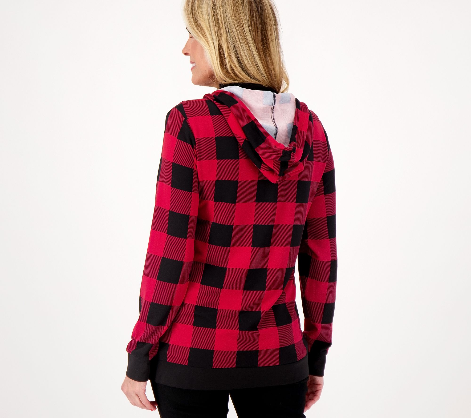 "As Is" Quacker Factory Soft Knit Buffalo Plaid Pull Hoodie