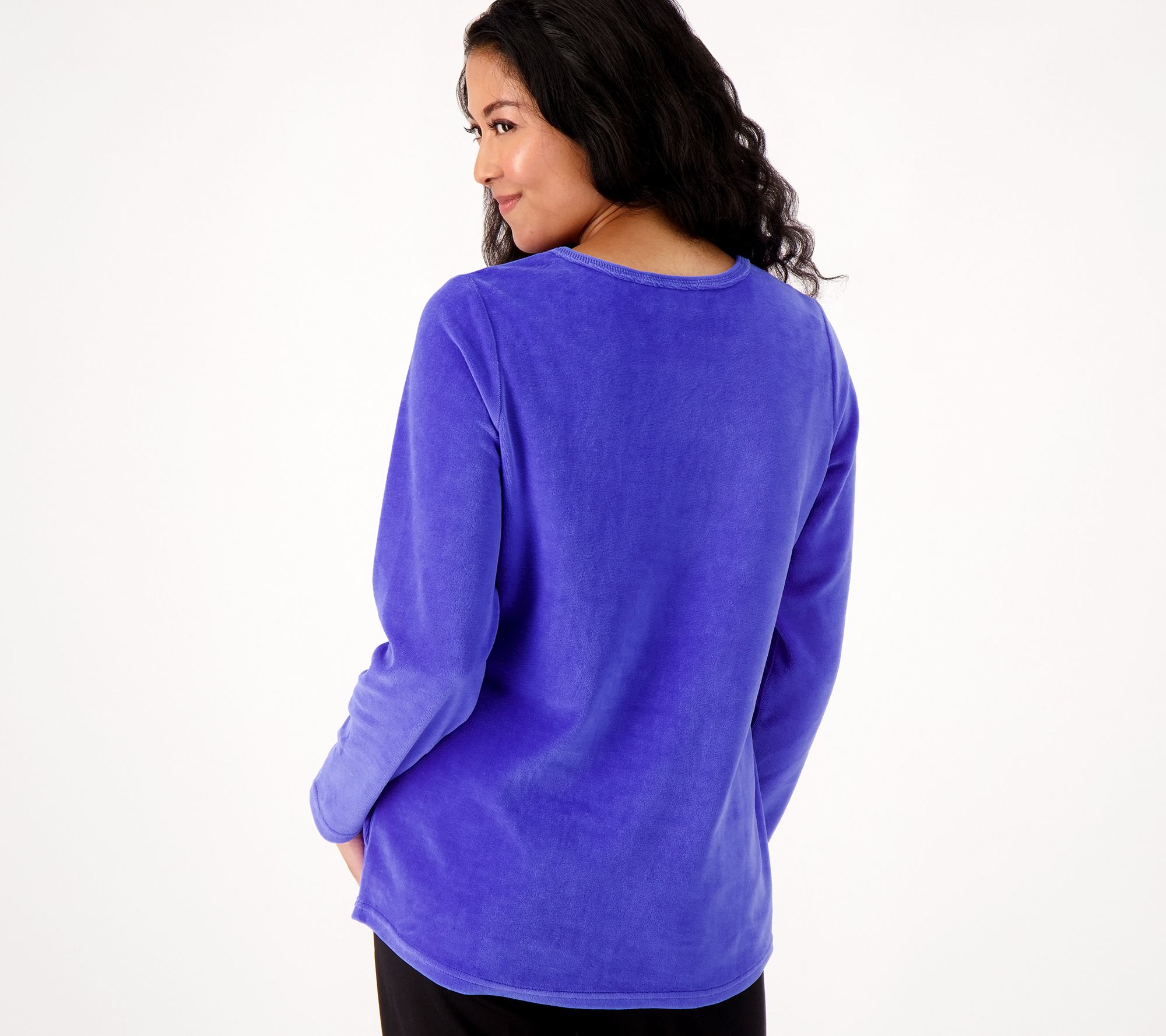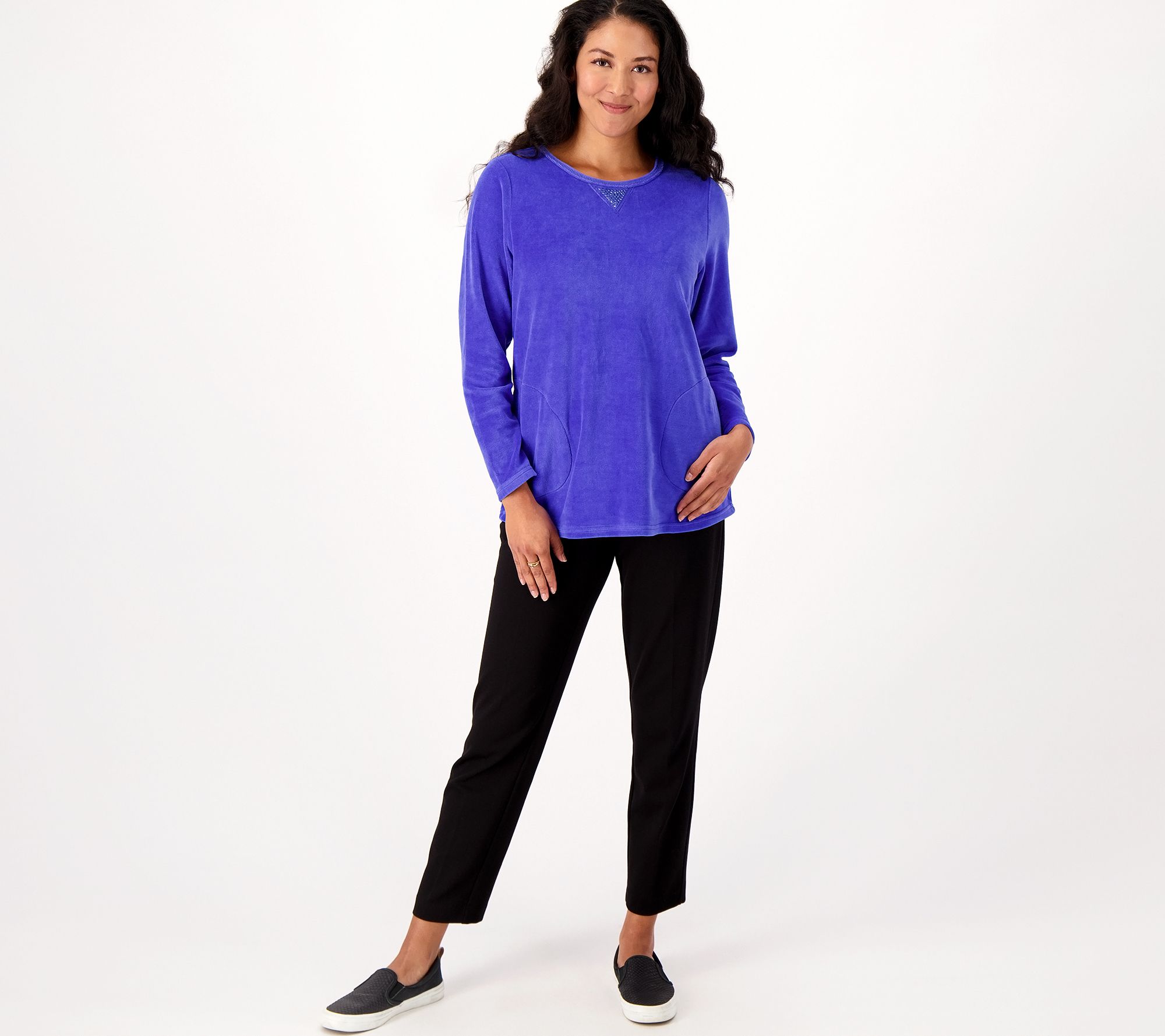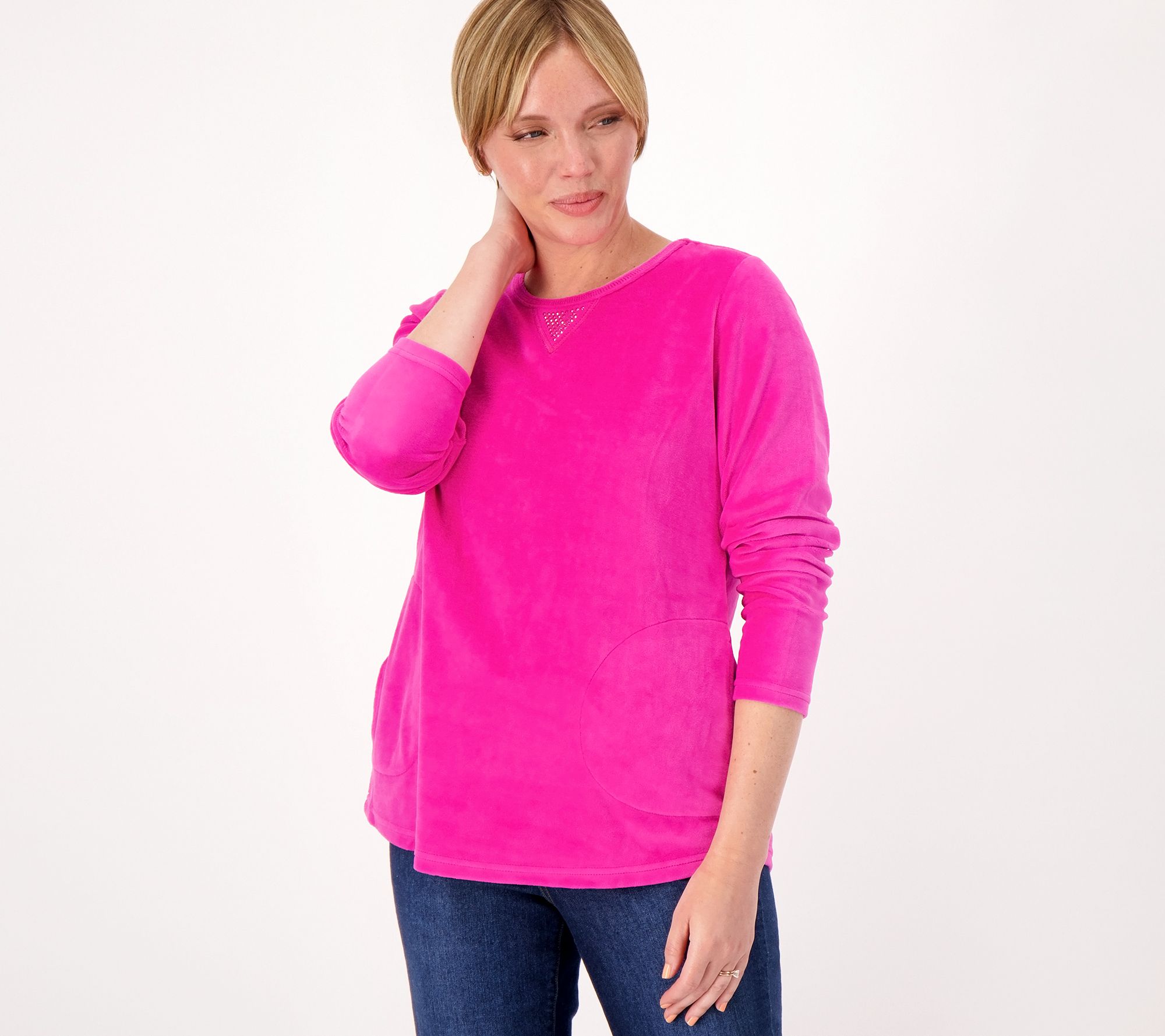Stay cozy and bring a little bling to your everyday, with this fab top. What sets it above the rest? Pockets and heat-set stones, of course! From Quacker Factory®.
