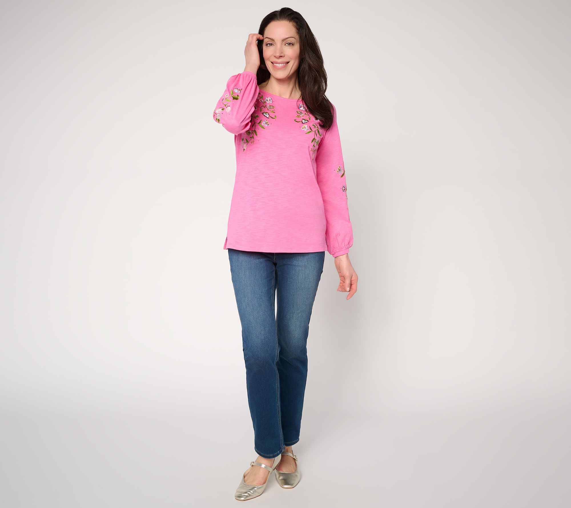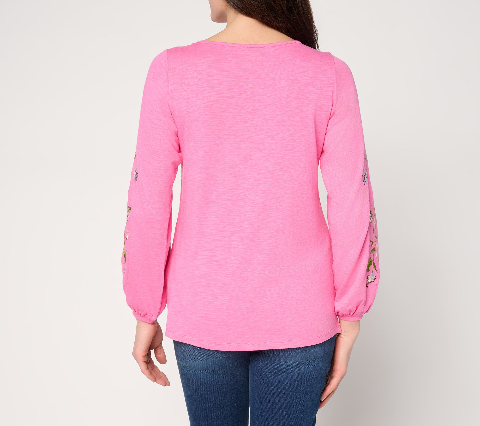 Whether you're planning an afternoon stroll or meeting friends for brunch, this bateau-neck top easily transitions with you, featuring stylish blouson sleeves and side slits at the straight hem for added movement. The soft slub knit blend adds casual comfort to your everyday look. From Quacker Factory®.