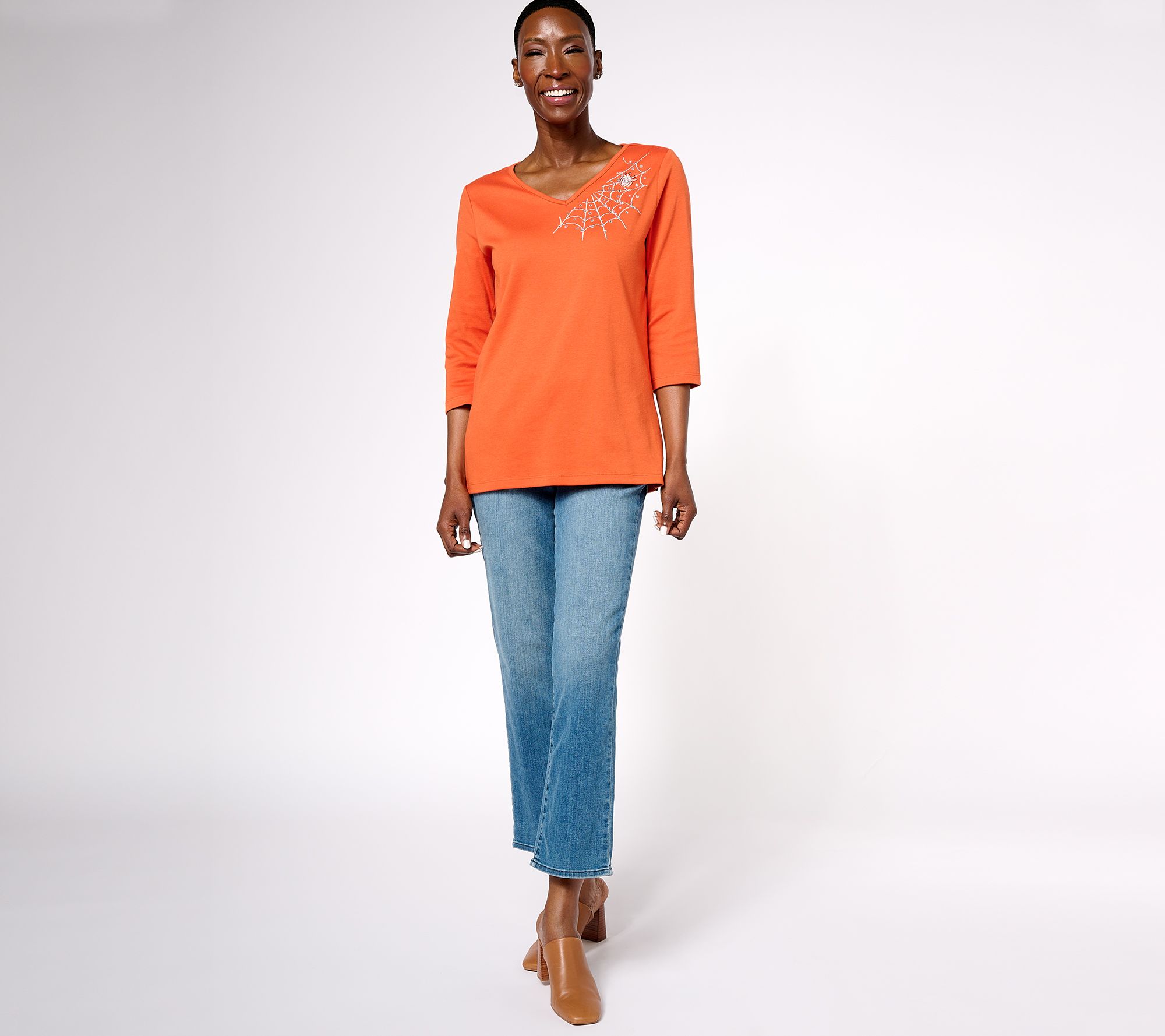 "As Is" Quacker Factory The Web Embroidered V-Neck 3/4 Sleeve Top