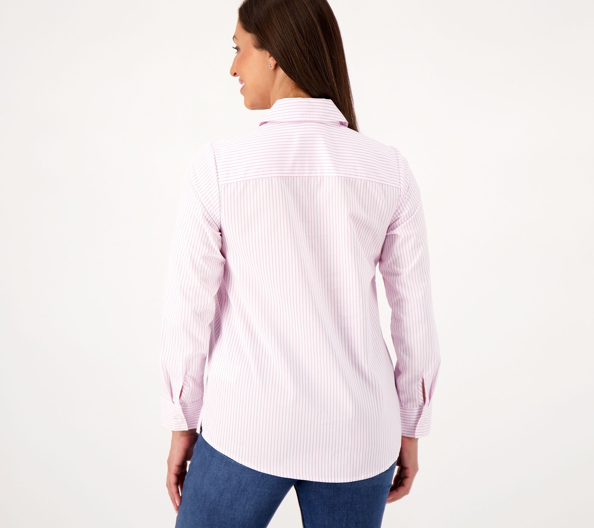 "As Is" Quacker Factory Winged Things Striped Button Front Shirt