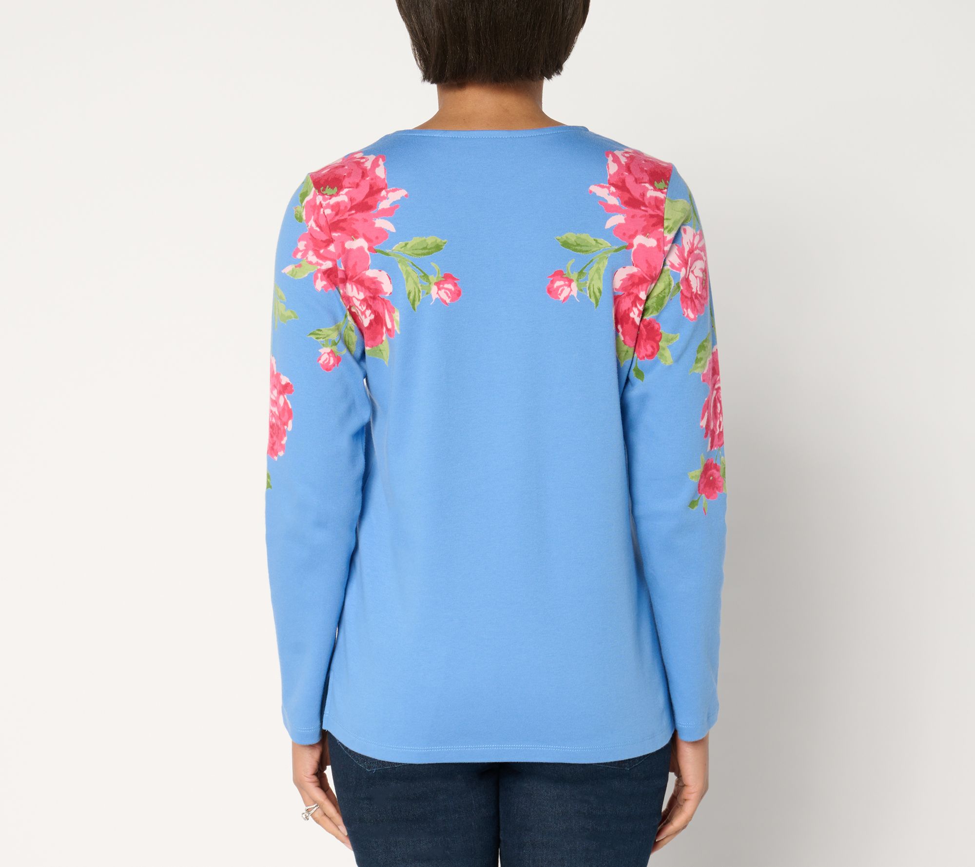 "As Is" Quacker Factory Winter Rose Garden Embellished Top