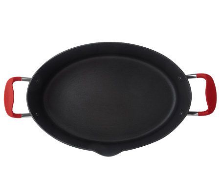 Designed by a pro--for professional results. Made from durable hard-anodized aluminum, a material two times harder than stainless steel, this pot efficiently and evenly heats and cooks. There's no hot spots to foul up your efforts. The spacious oval design--Rachael's favorite--takes up just one burner and can be loaded up with lots of ingredients. It's nice and long, so you can throw spaghetti straight in the pan without breaking it in half, or cook veggies on either side of a roast.