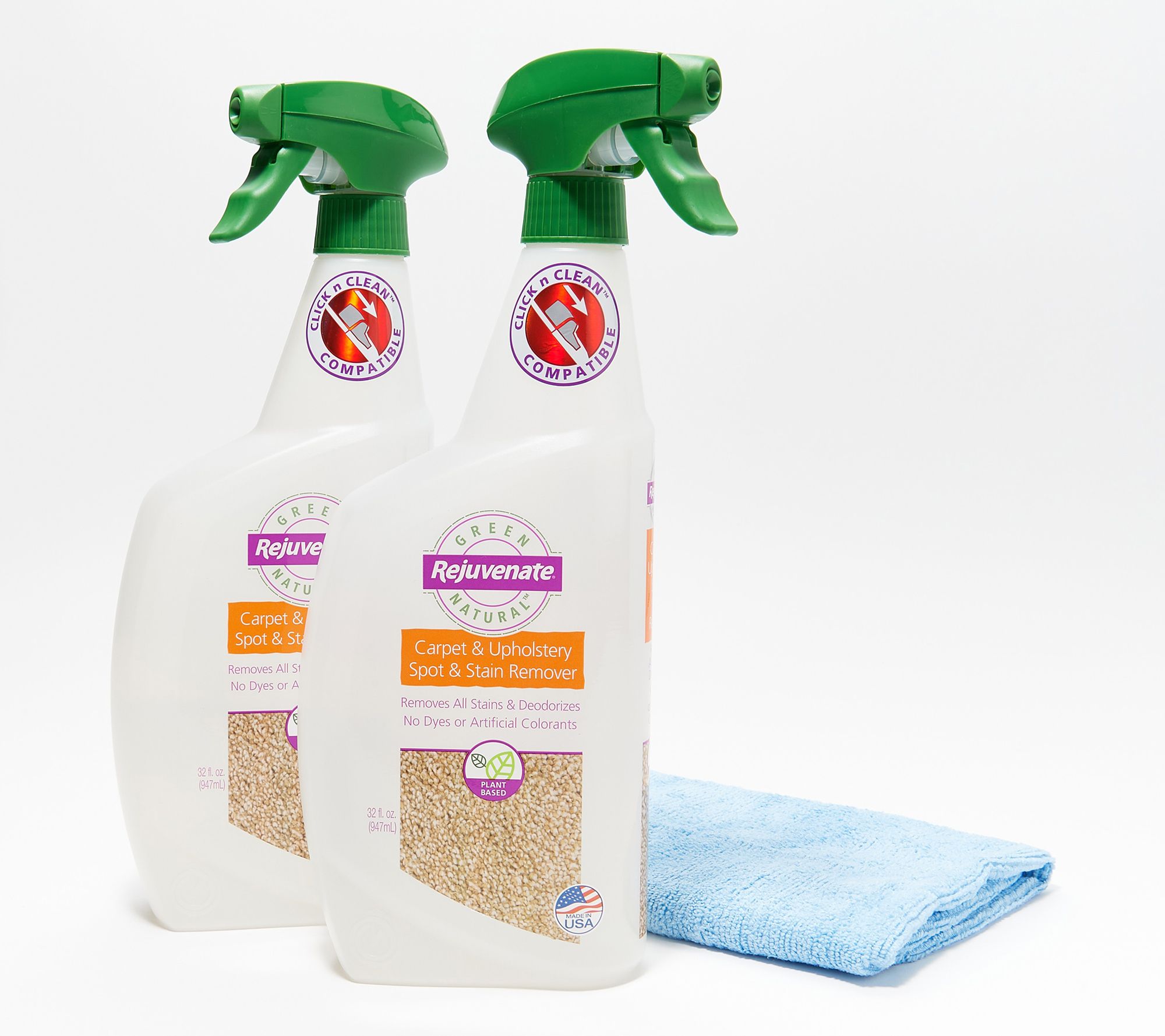 • Includes two 32-oz Carpet & Upholstery Spot & Stain Removers and 16" x 16" microfiber cloth
