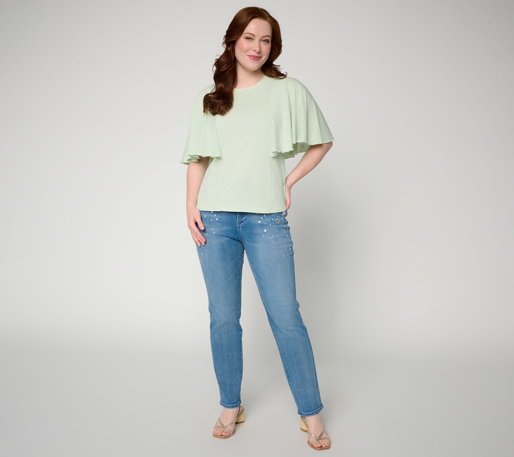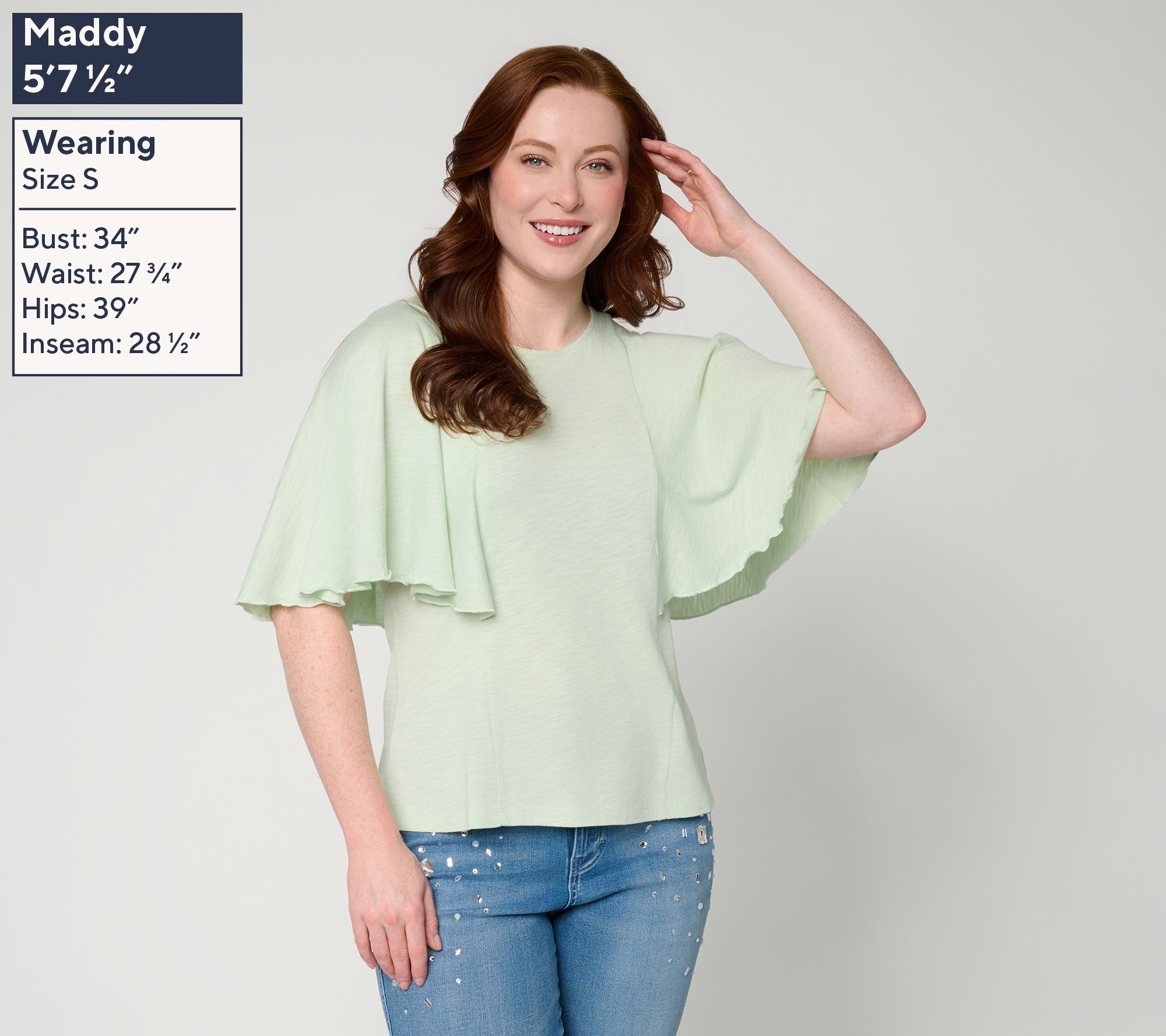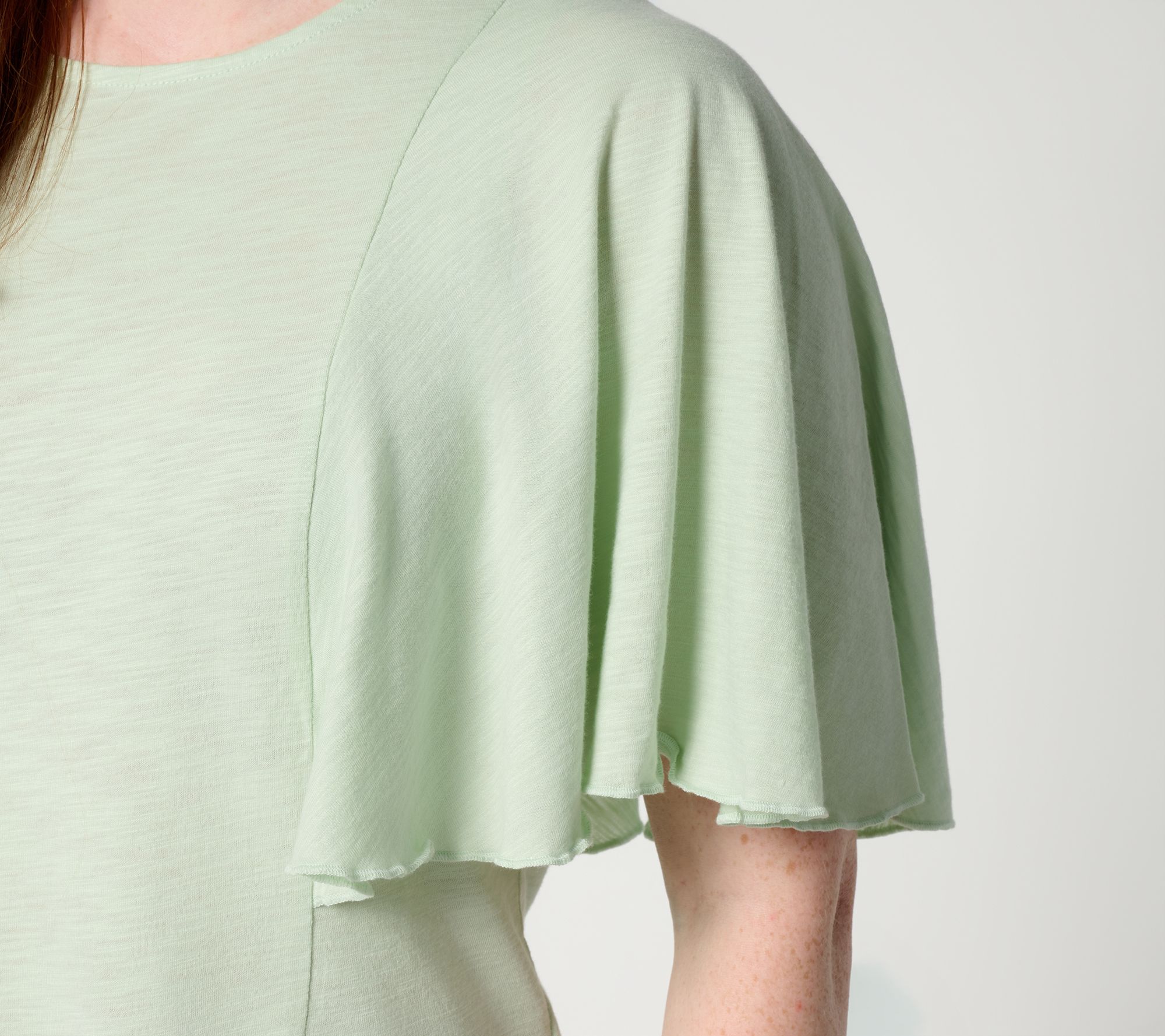 • Features: crew neckline, tank top body, seams with flutter sleeves, turnback hem