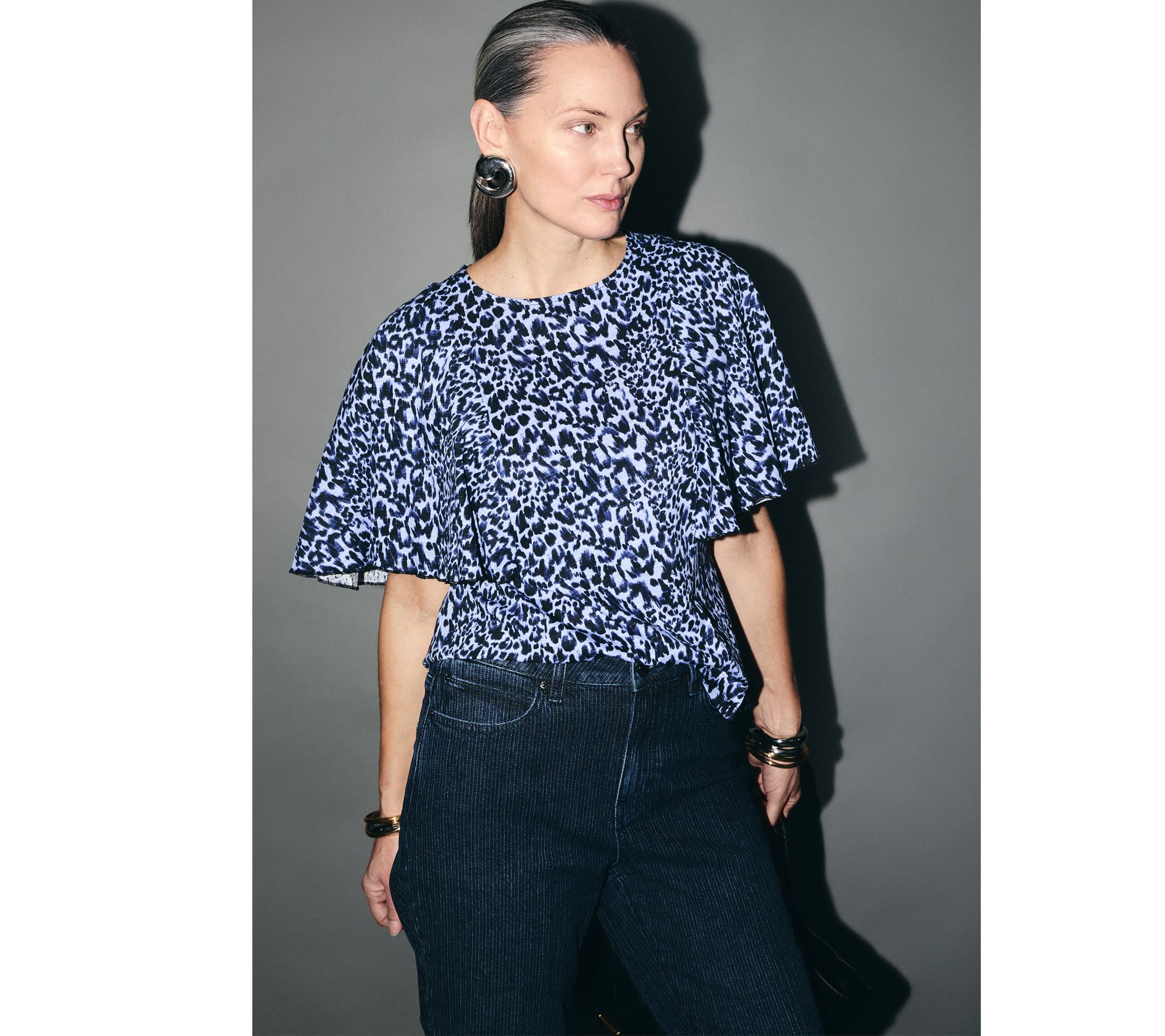 Refresh your day with the soft feel and chic details of this semi-fitted knit top. Flutter sleeves and a clean crew neckline give easygoing charm -- ideal for pairing with your favorite denim or layering under jackets as you head from morning meetings to lunch dates. From RM Studio x Rebecca Minkoff.