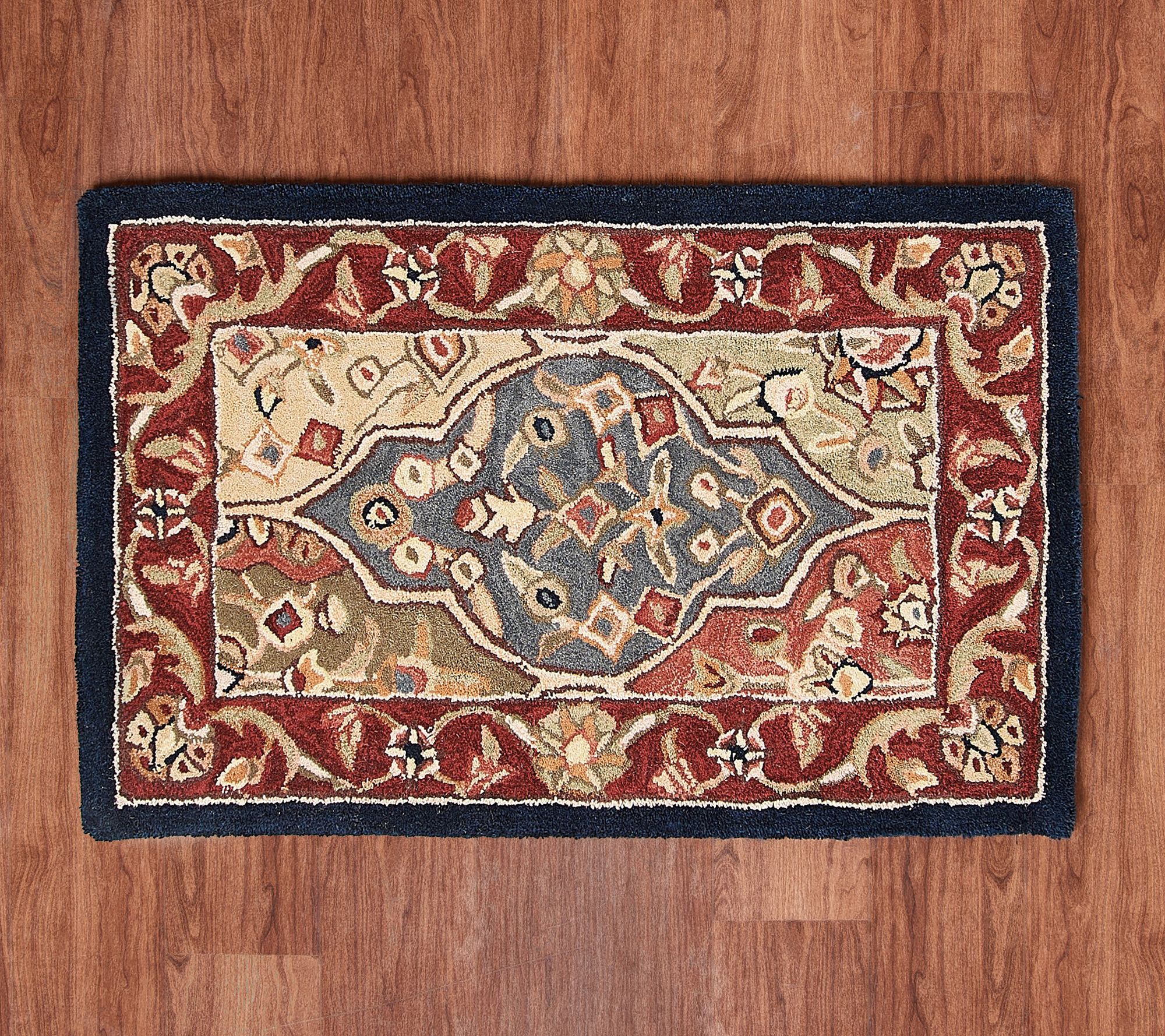 Redesigning a room? Or searching for an instant refresh? Start from the ground up by laying down the rich jewel-toned palette and striking medallion-shaped panels of this wool accent rug. Plush and double-sheared for crisp detail, this beautiful design will soften a hard floor in any room of your home. From Royal Palace® Rugs.