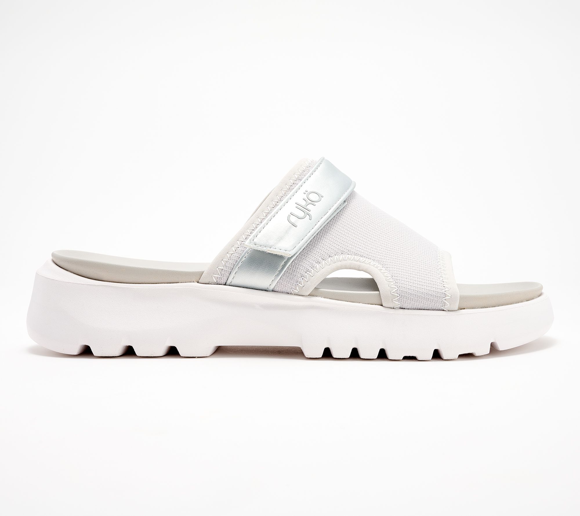 Slip into weekend bliss with these Ryka sport slides. Brilliant for a casual stroll in the park or a day of shopping, their molded footbed, designed to contour to the shape of your foot, and compression-molded ACTIVFoam cushioning offer a delightful escape from your weekday sneakers and heels. From Ryka.