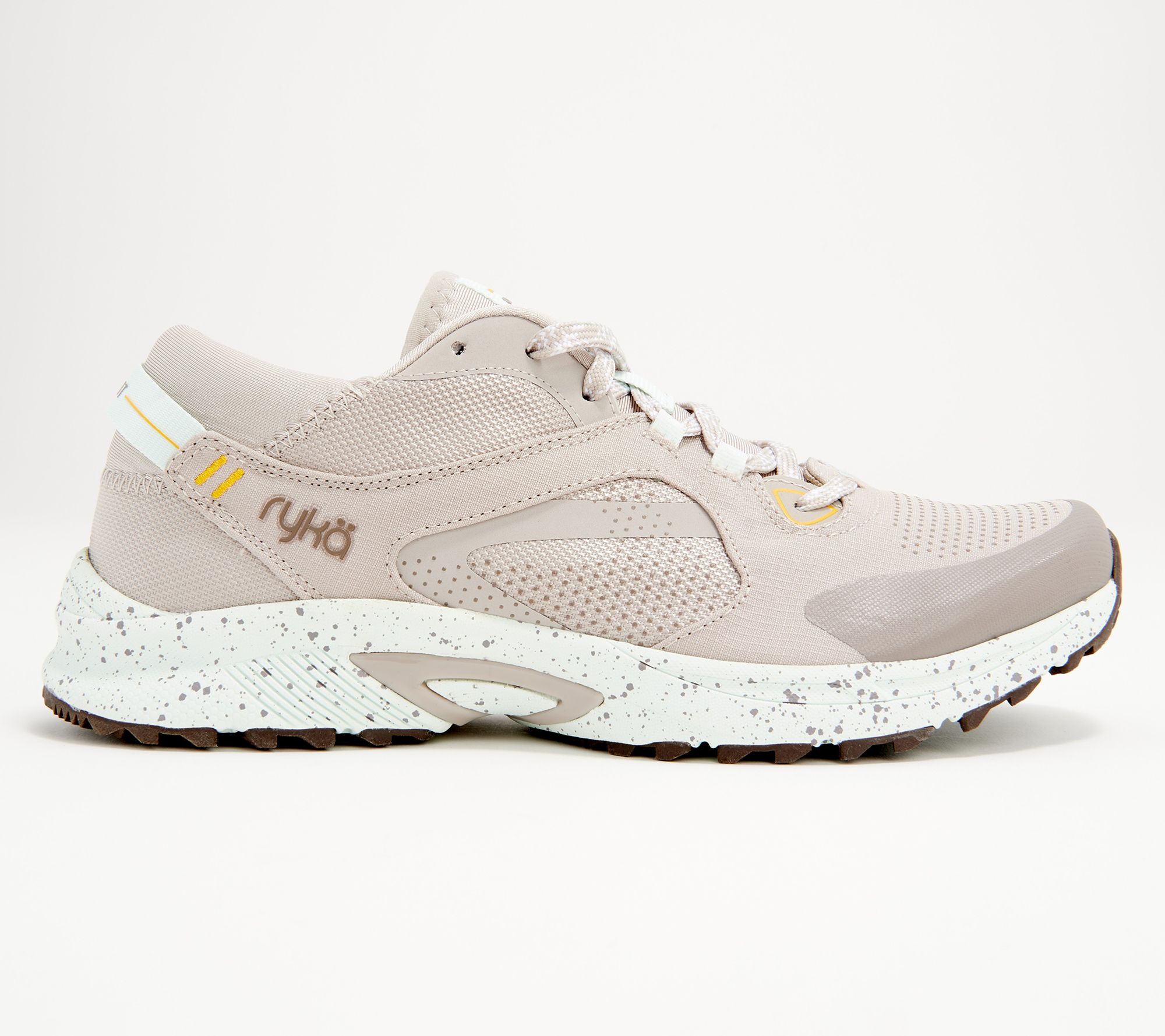 These shoes are built for the trail. For trekking through dirt and stepping over rocks. For pausing at the top of the mountain to take in that breathtaking view. Focus on the scenery and know that your feet are taken care of. From Ryka.