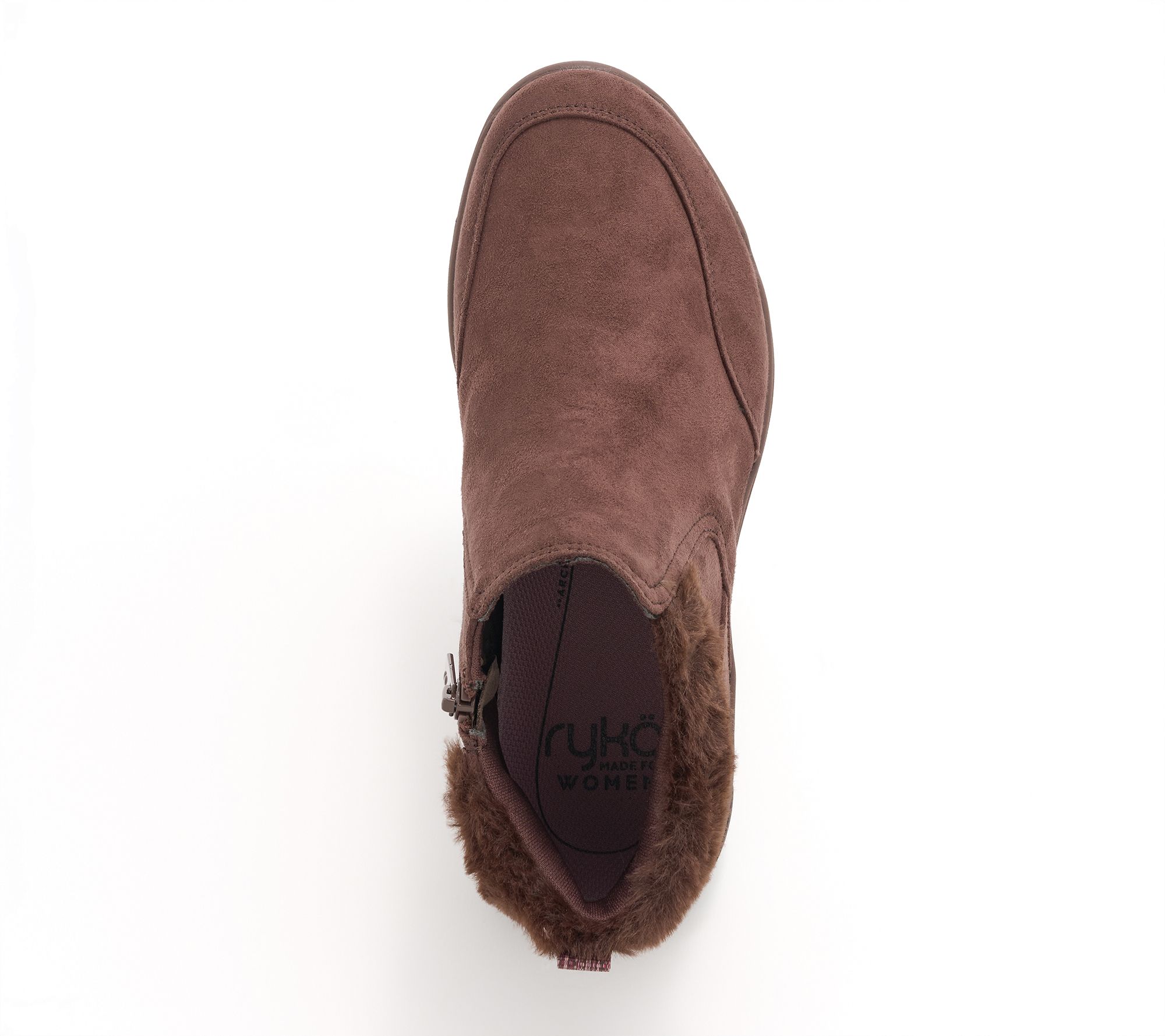 • Water-repellent upper, faux-fur heel collar, inside zipper