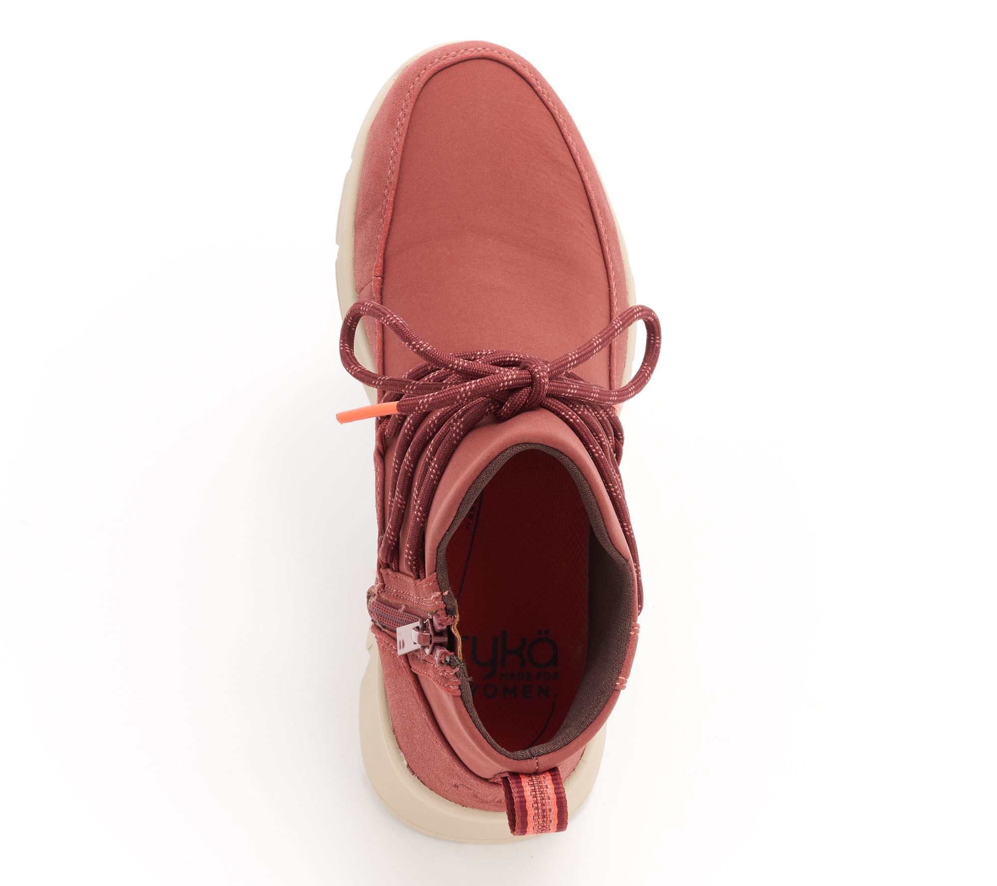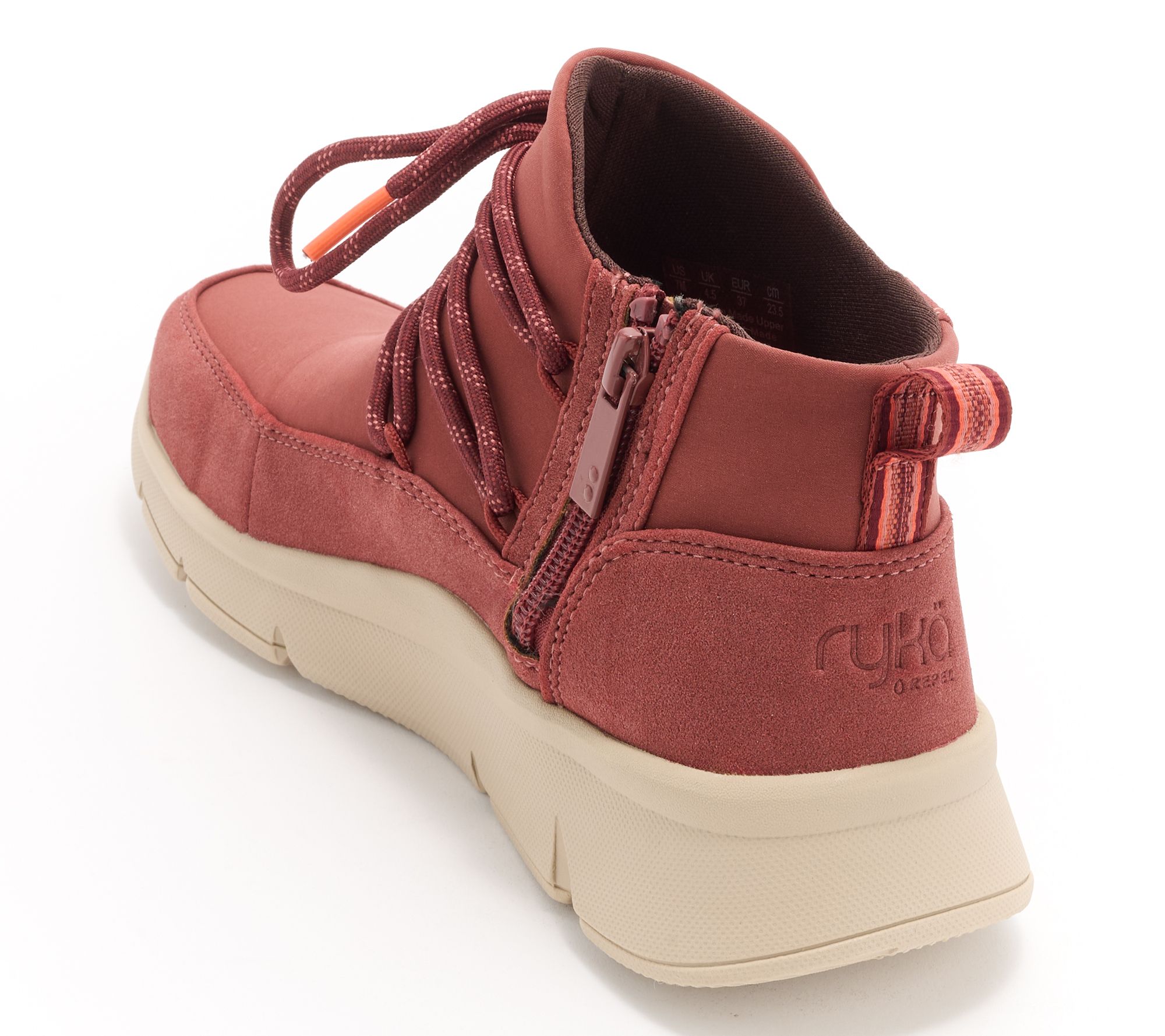 • Water-resistant Ryka Repel nylon upper with faux leather overlays, inside zip closure, laces, heel pull