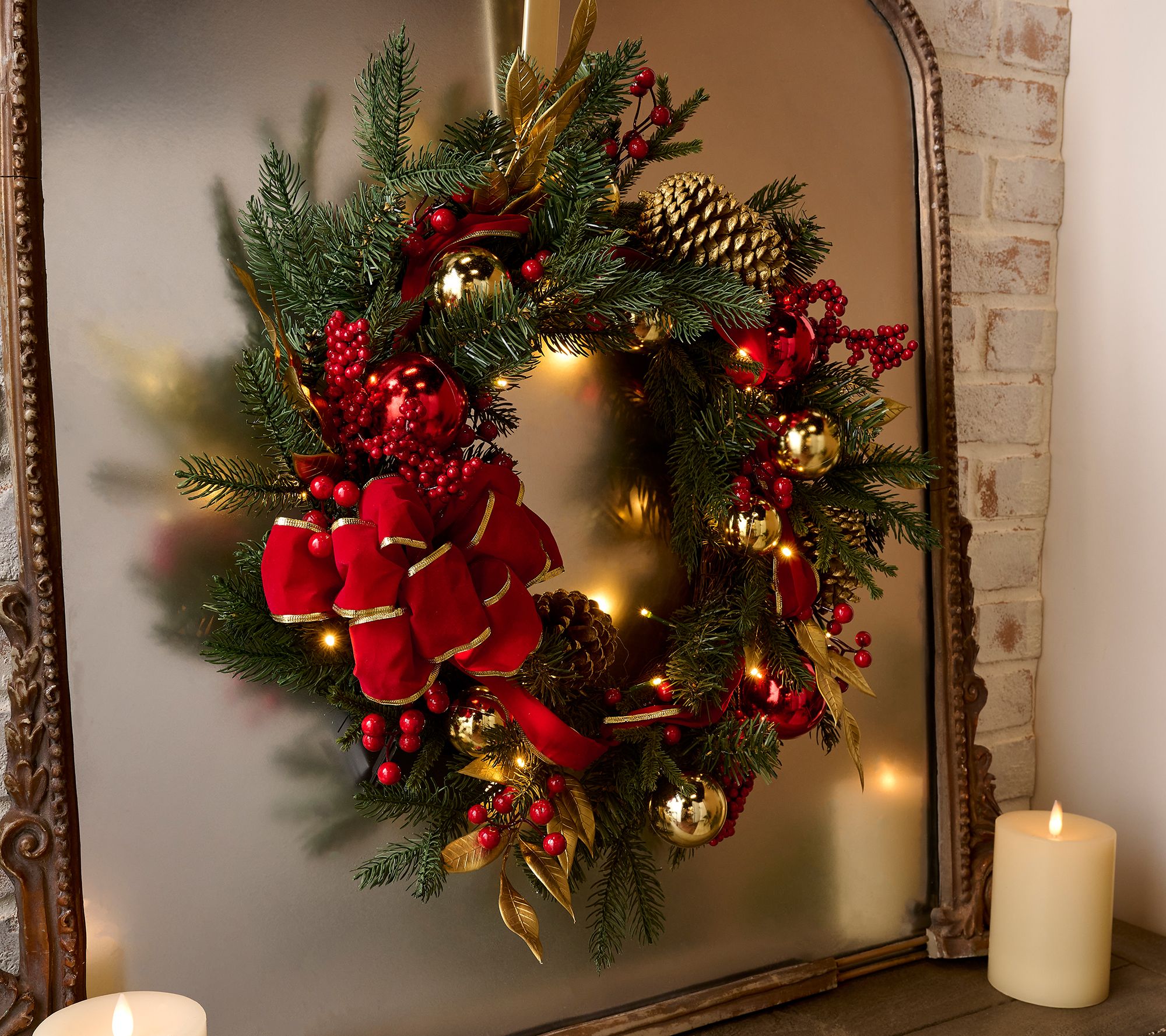 "As Is" Sandra Lee 26" Classic Christmas Wreath with LED Lights