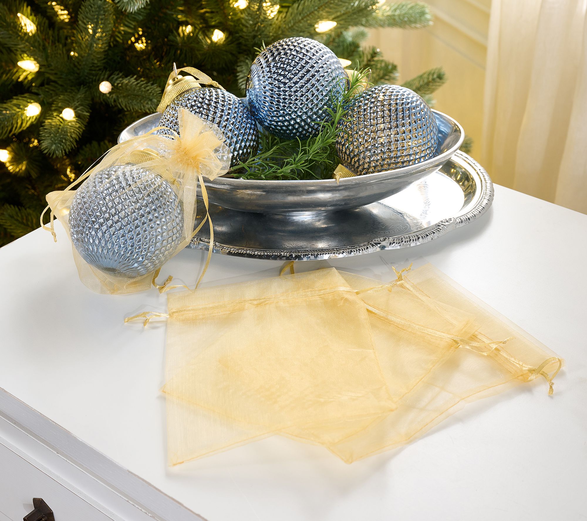 Light up your holiday with these gorgeous diamond-textured ornaments. The stunning accents illuminate from within and feature a convenient timer function. They even include gold sheer gift bags -- making them perfect for gifting! From the Valerie Parr Hill Collection.