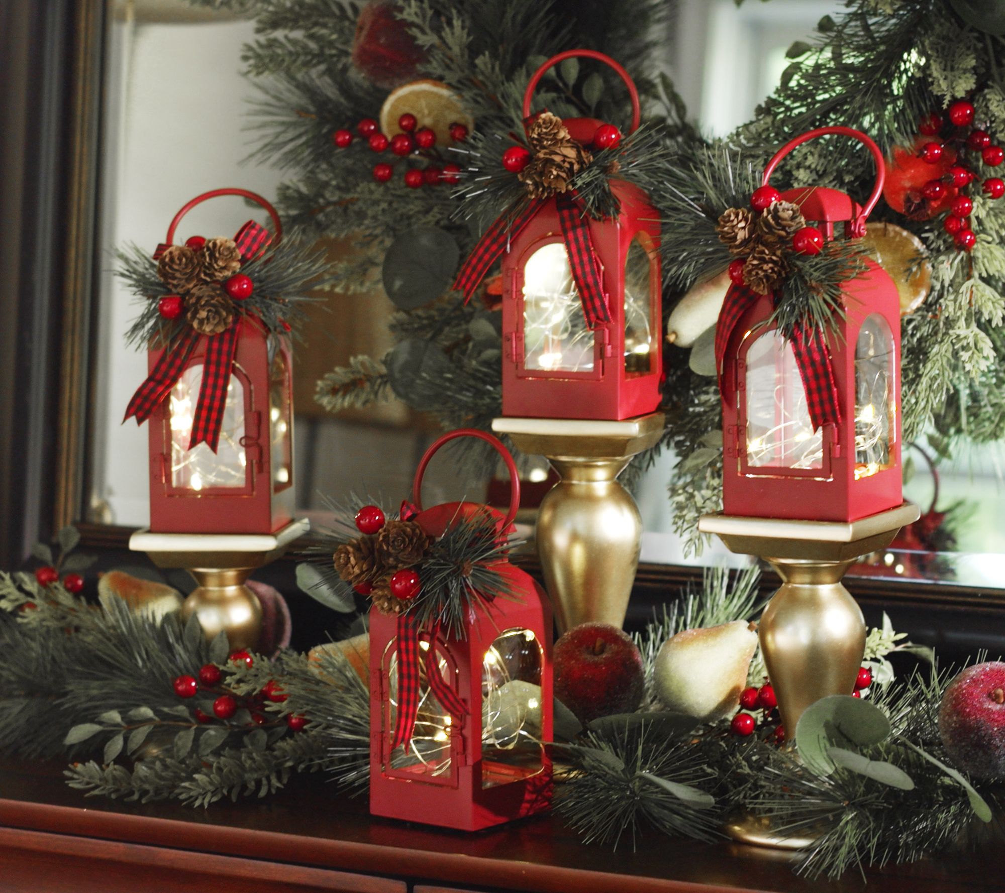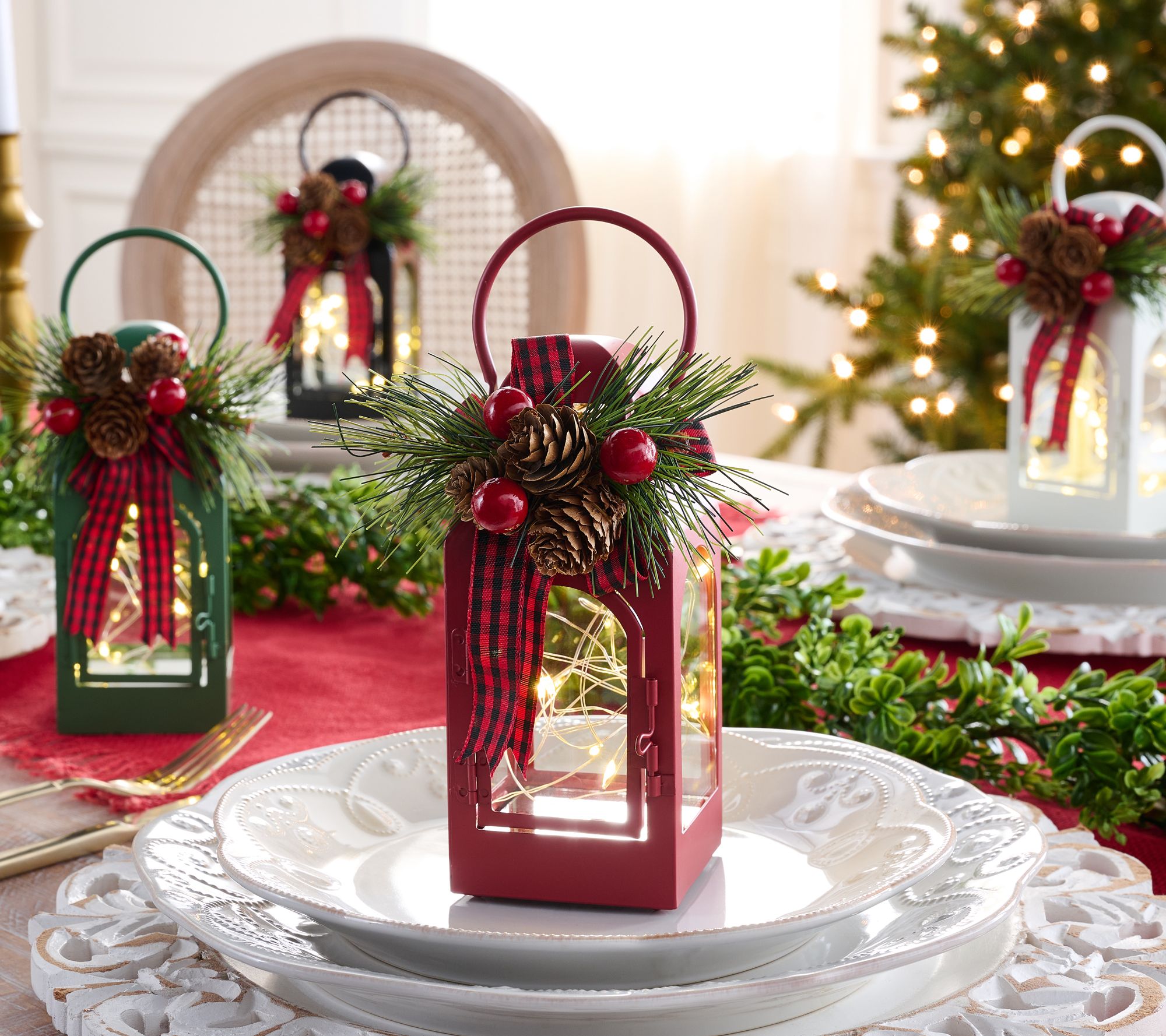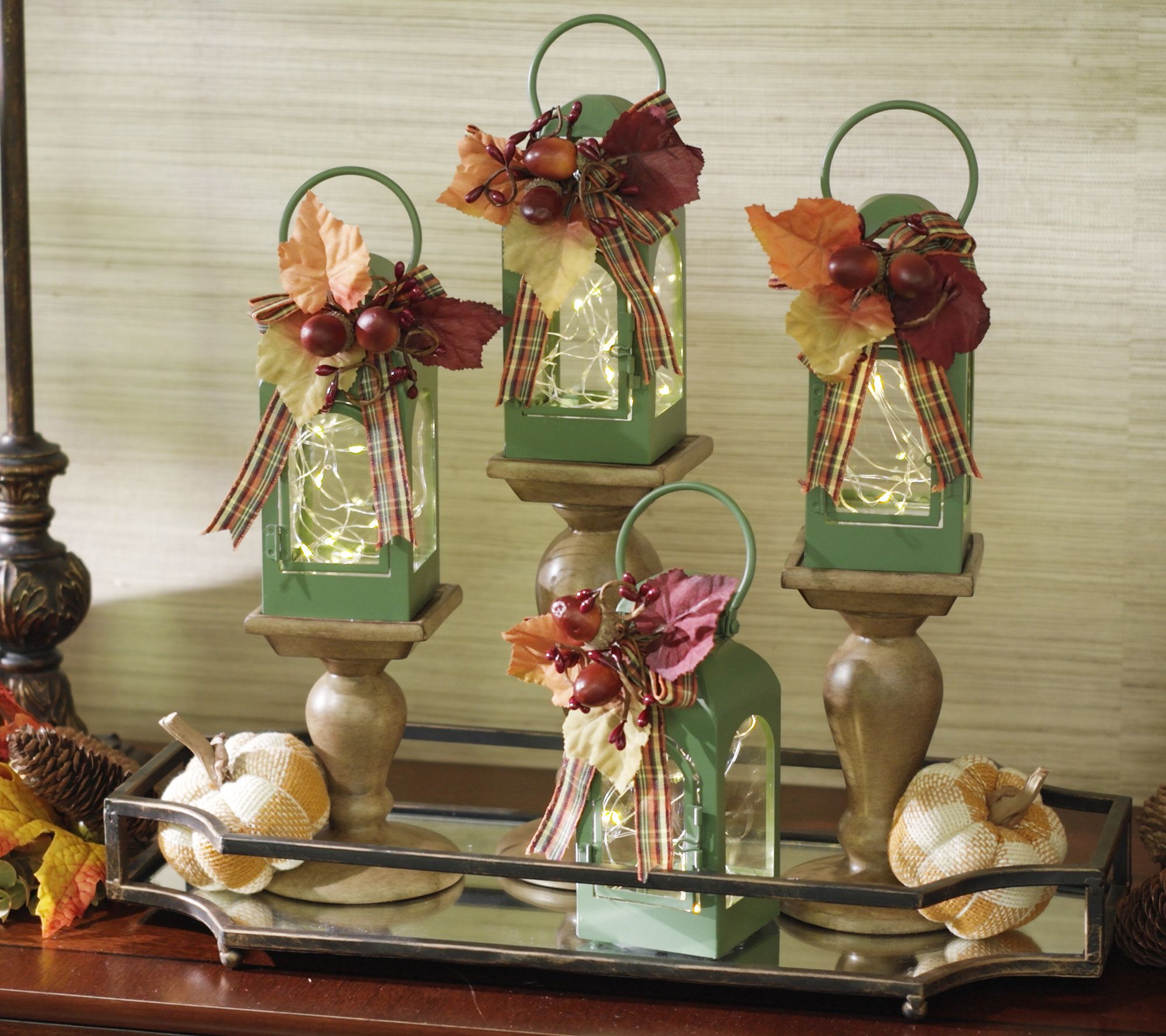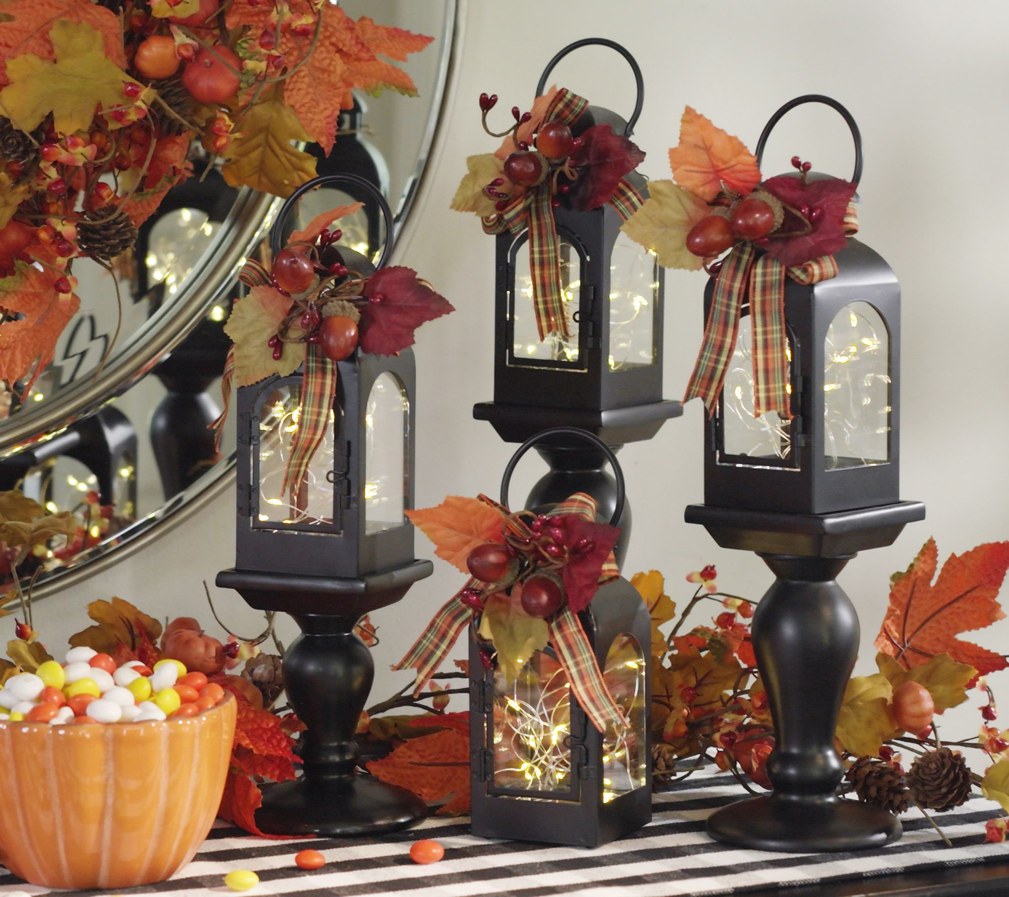 Give your home a gorgeous glow with this set of fairy light lanterns. Each comes with a festive topper to capture the essence of the holiday season. Not quite ready for Christmas? Swap out the holiday toppers for the harvest-themed ones and add them to your Thanksgiving tablescape.