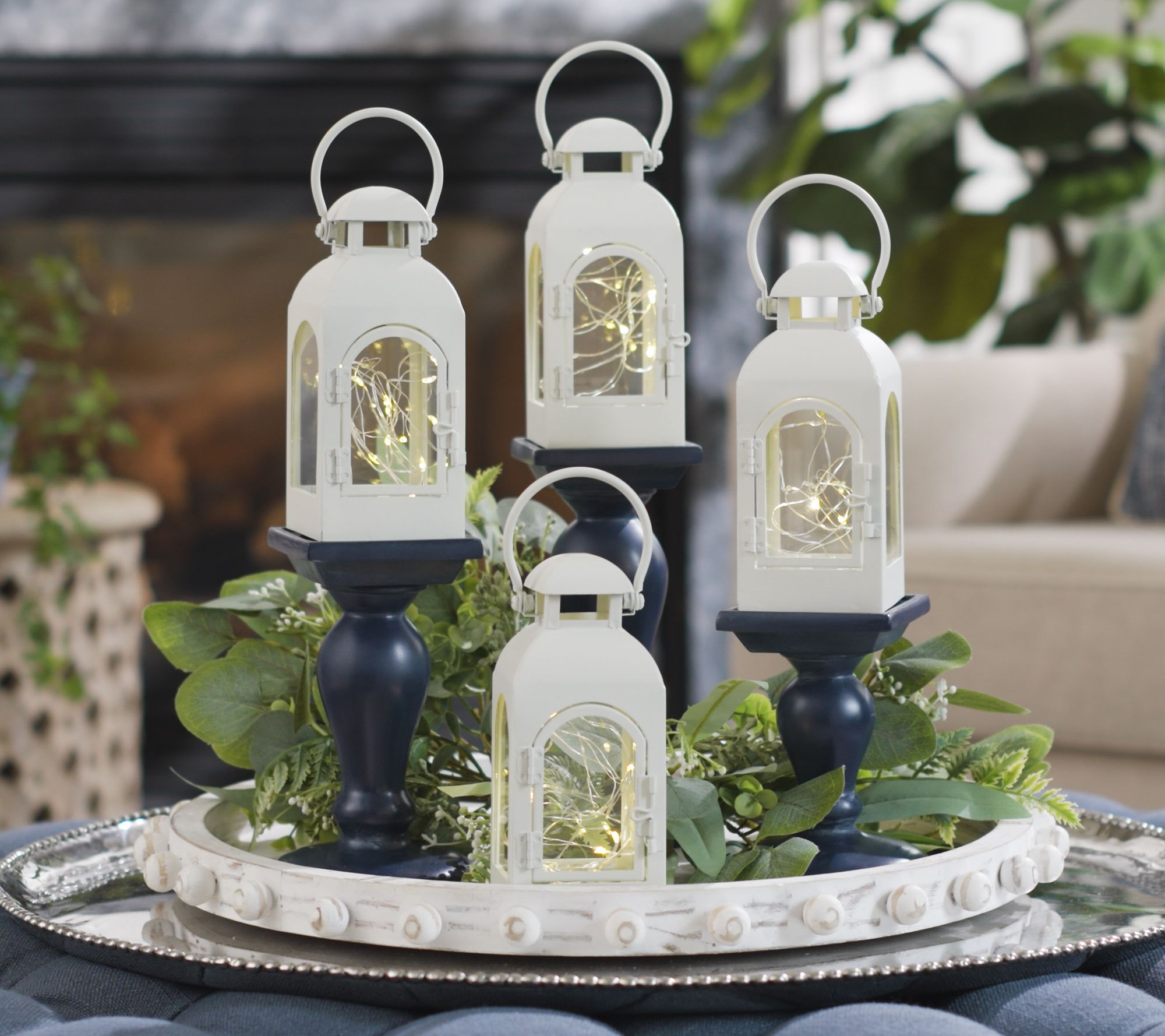 "As Is" Set of (4) 6" Fairy Light Lanterns with 8 Toppers by Valerie