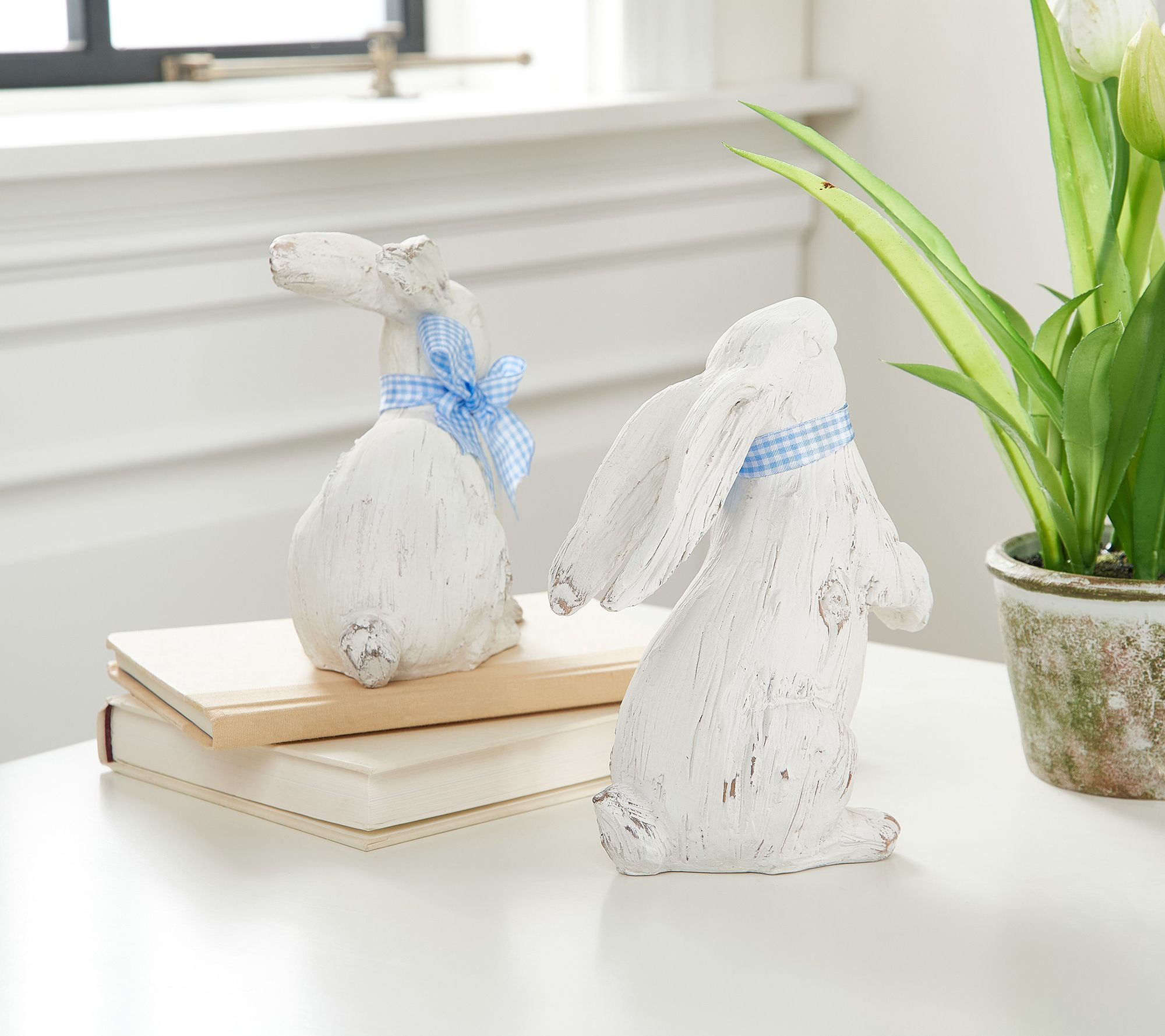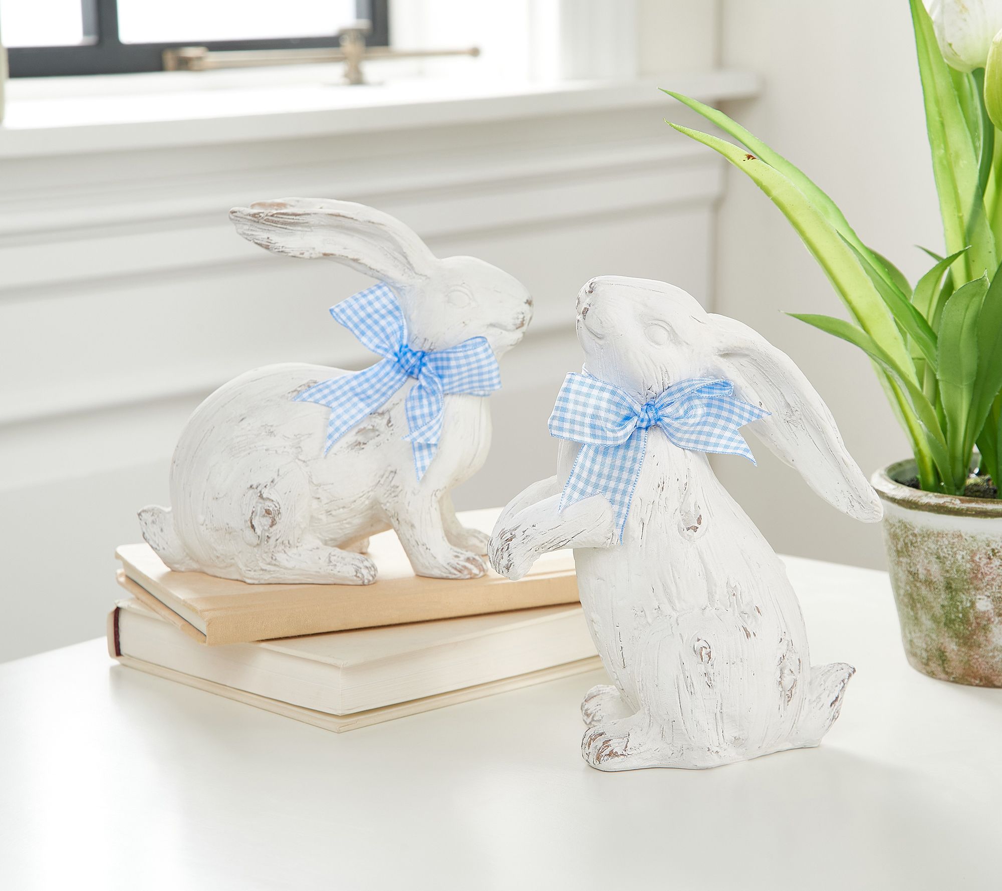 "As Is" Set of 2 Bunnies with Checked Ribbon by Valerie