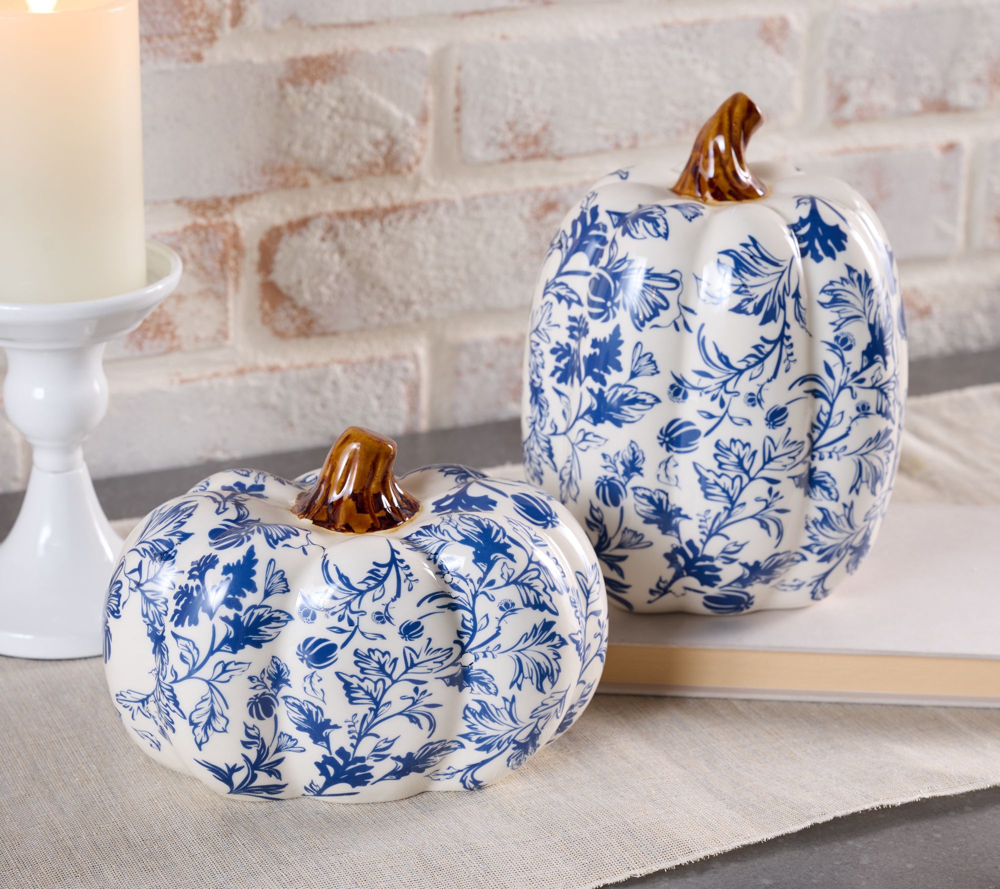 "As Is" Set of 2 Ceramic Toile Pumpkins by Valerie