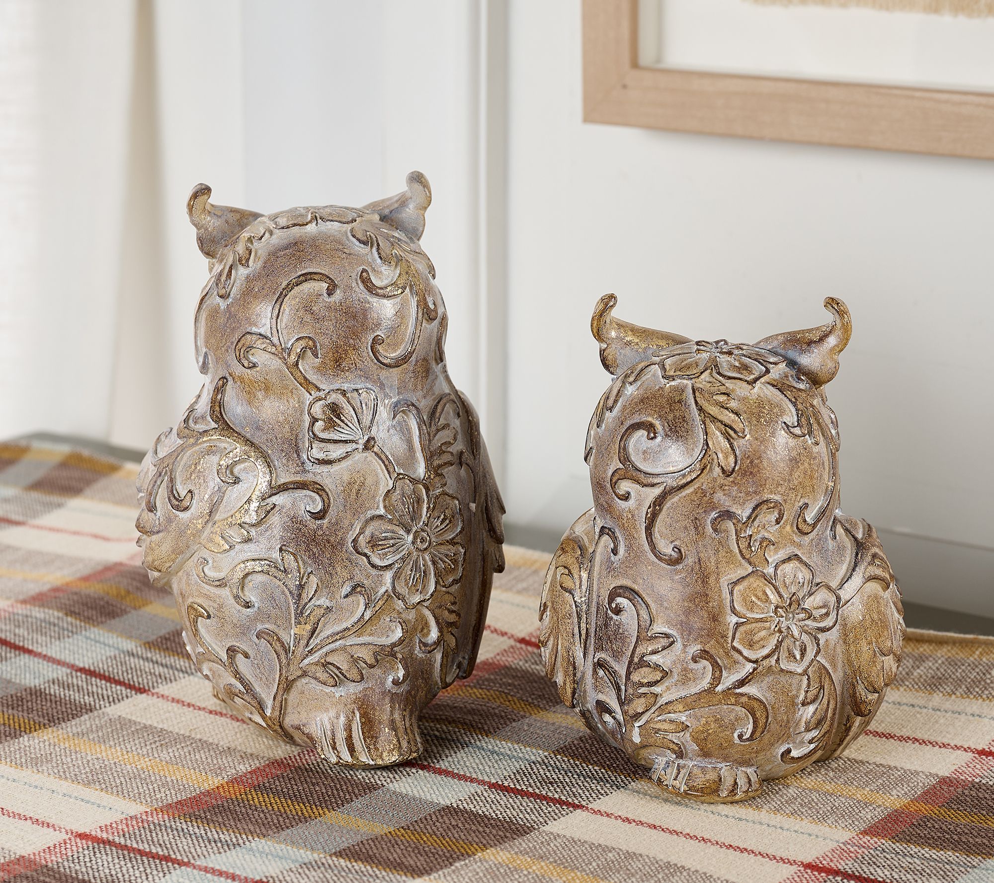 "As Is" Set of 2 Embossed Owl Figures by Valerie