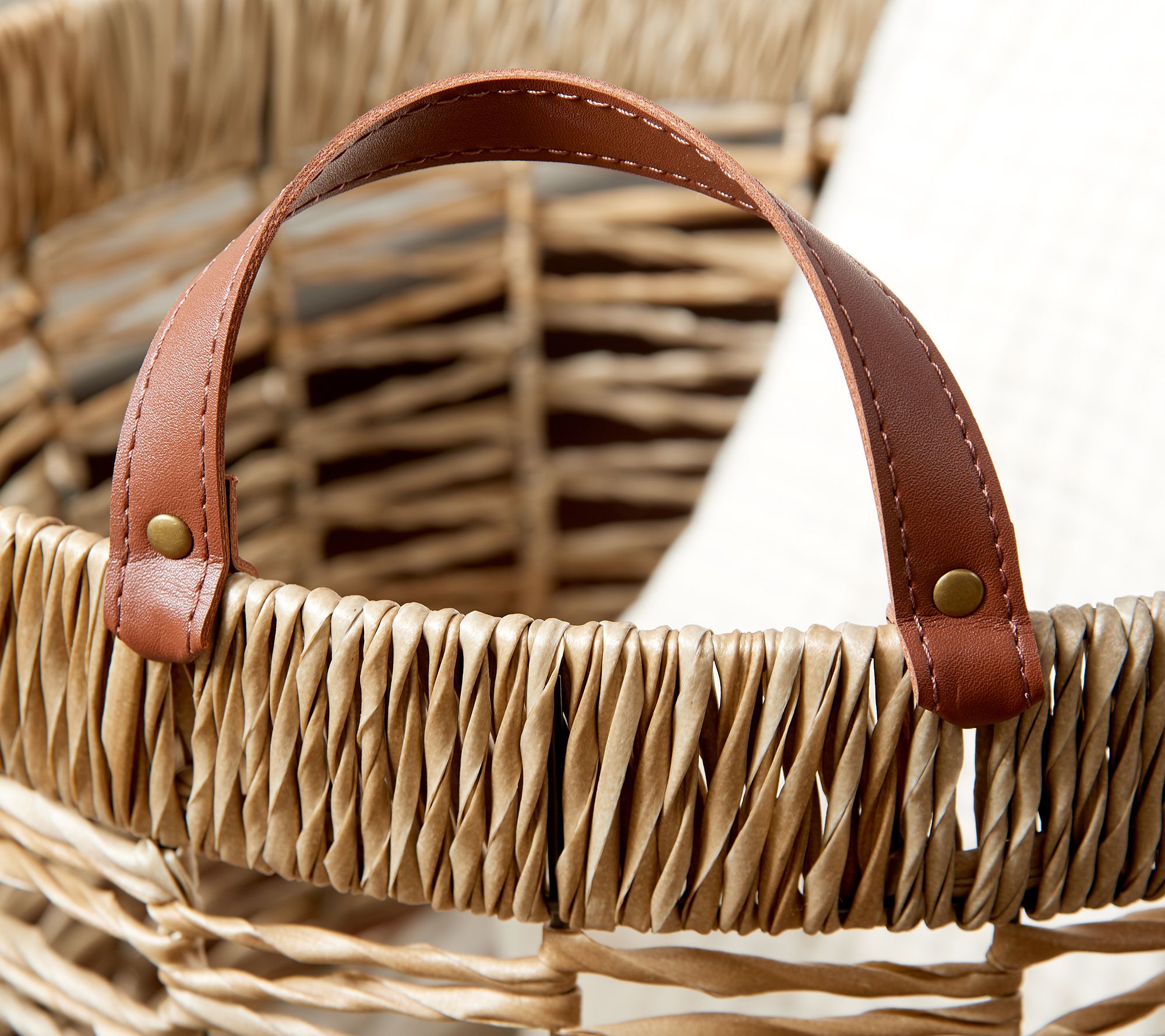 • Faux leather handles