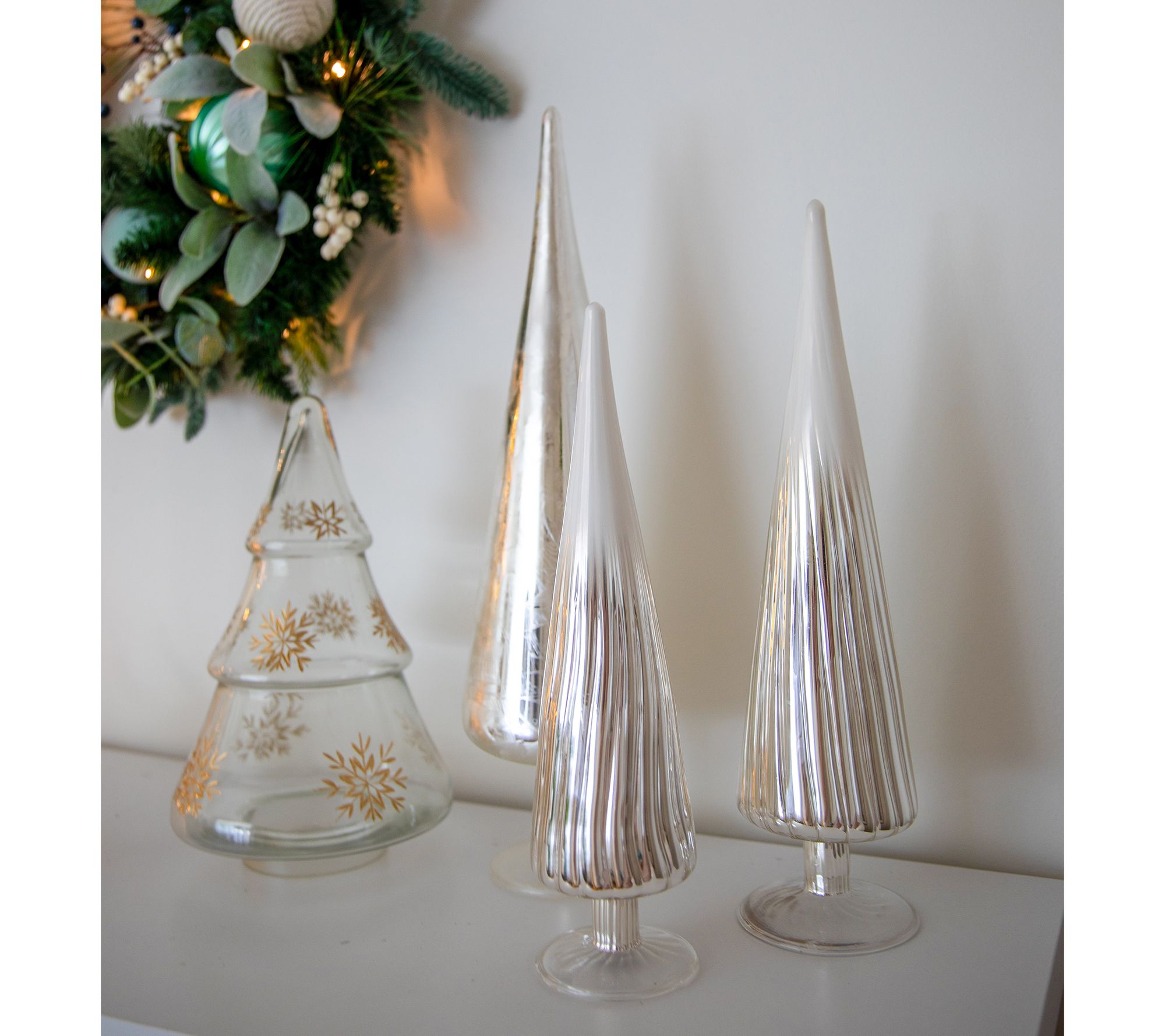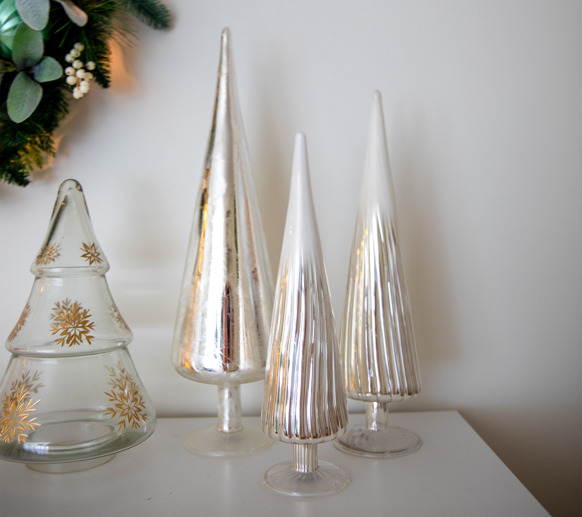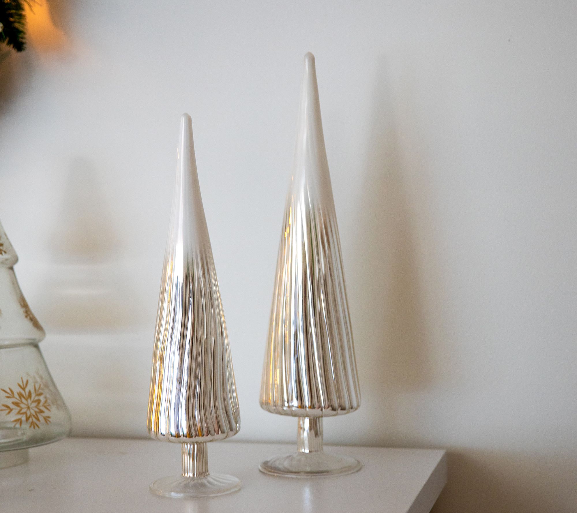 When guests gather in your holiday home, these ombre glass trees create a stunning focal point on your mantel, entryway table, or bookshelf. Arrange the shimmering pair together for a layered look or scatter them throughout your space to add a hint of color and charm in every corner. Their soft gradient hues complement festive decor and bring gentle elegance all season long. From Lauren McBride.