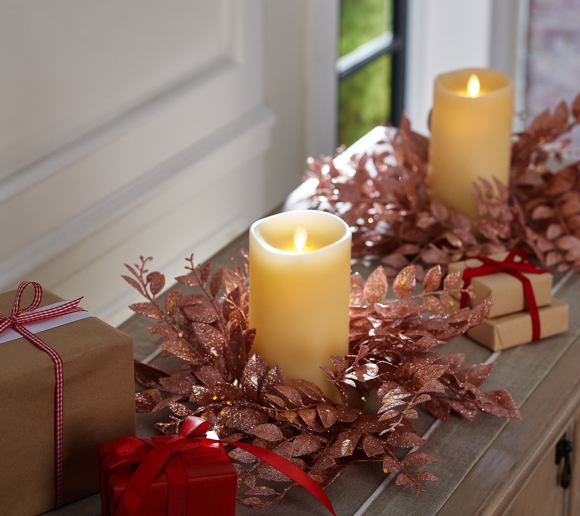 Dressed for the holidays! These shimmering candle rings make for a simple, seasonal way to style your favorite flameless candles. From the Valerie Parr Hill Collection.