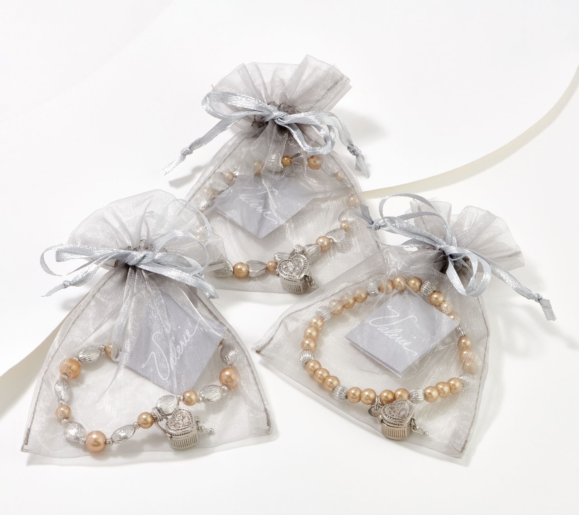 • Includes three bracelets, each with a sheer gift pouch