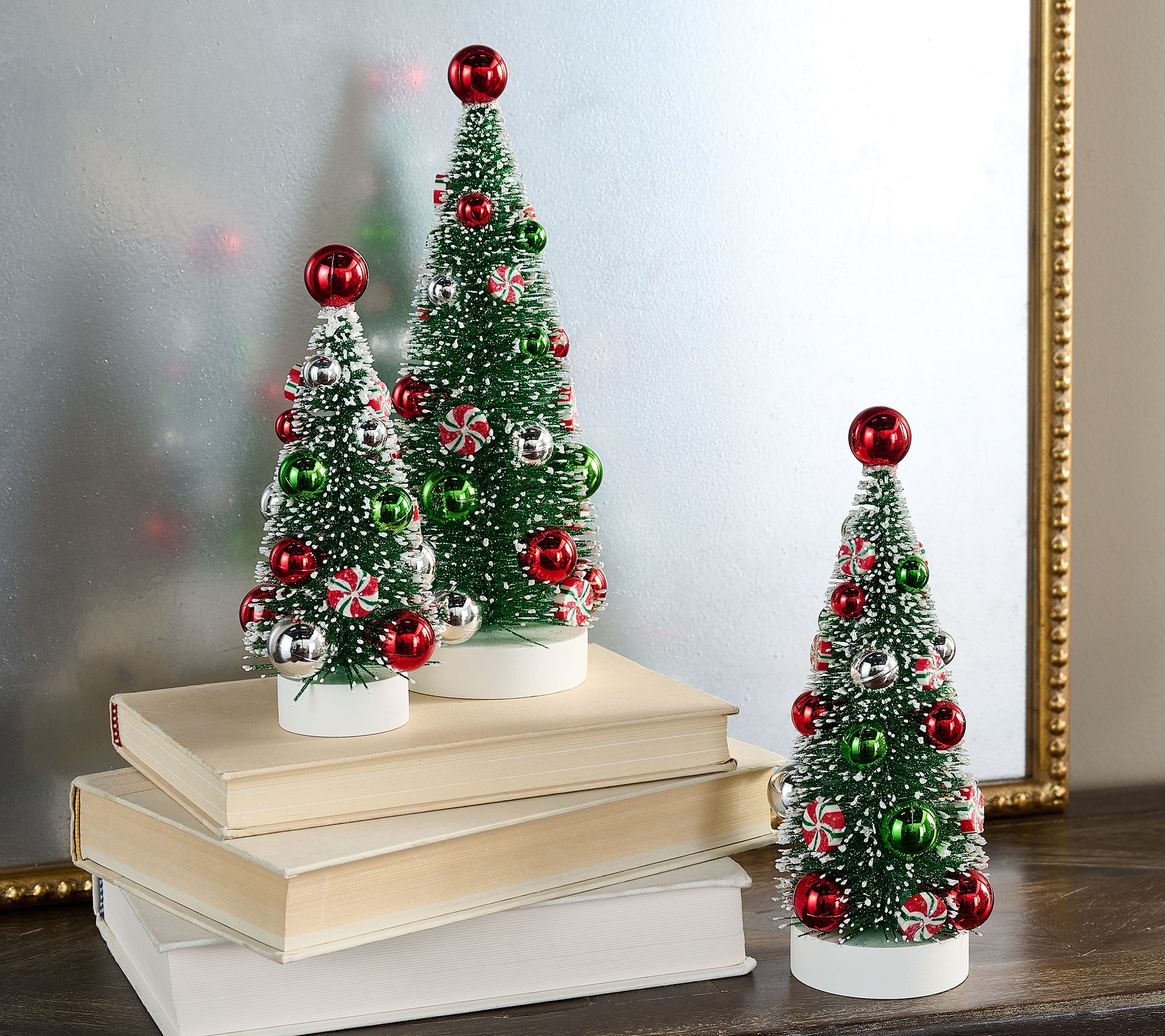 "As Is" Set of 3 Decorated Bottlebrush Trees by Valerie