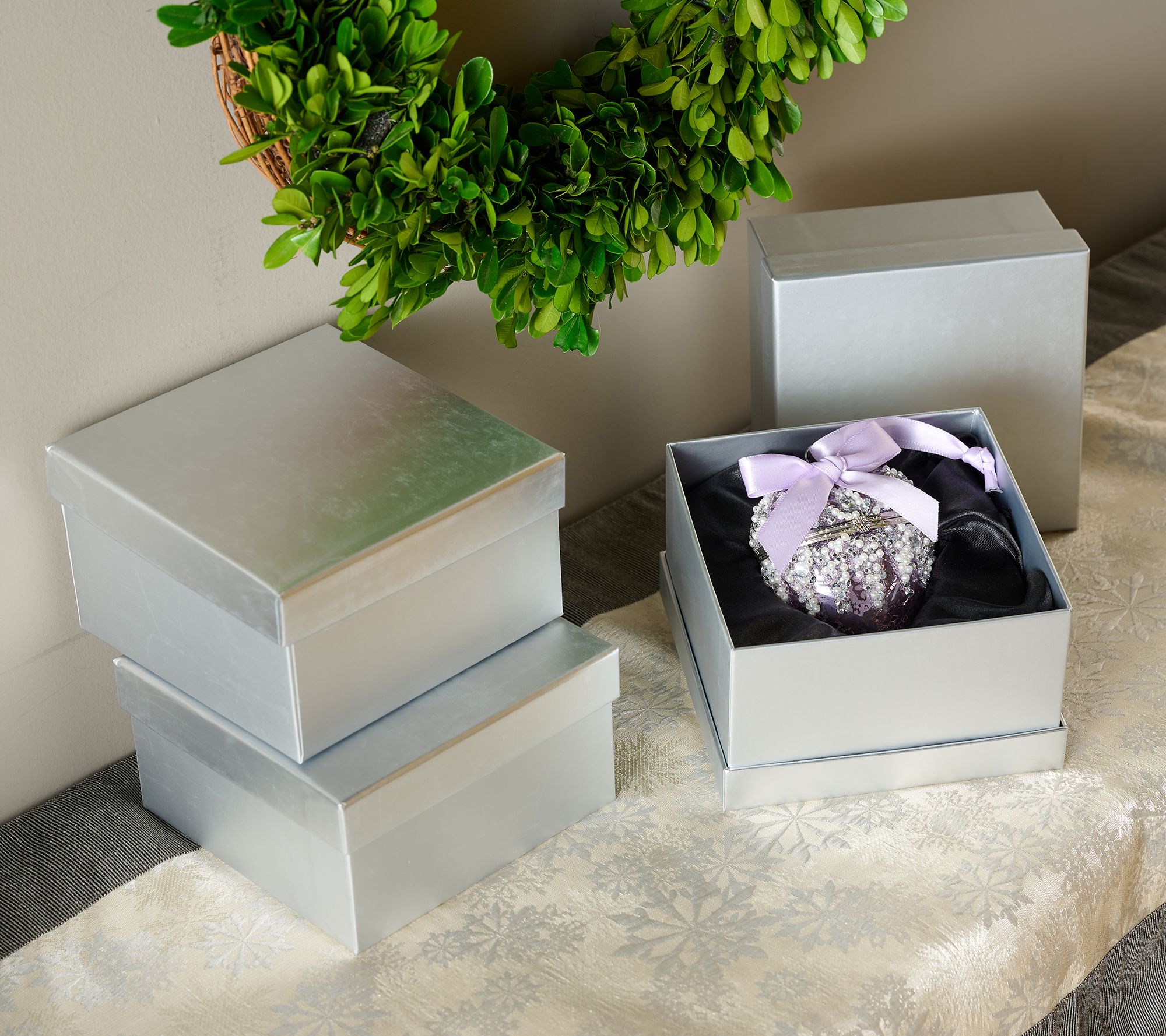 • Includes four mercury glass heart ornaments and four satin-lined gift boxes