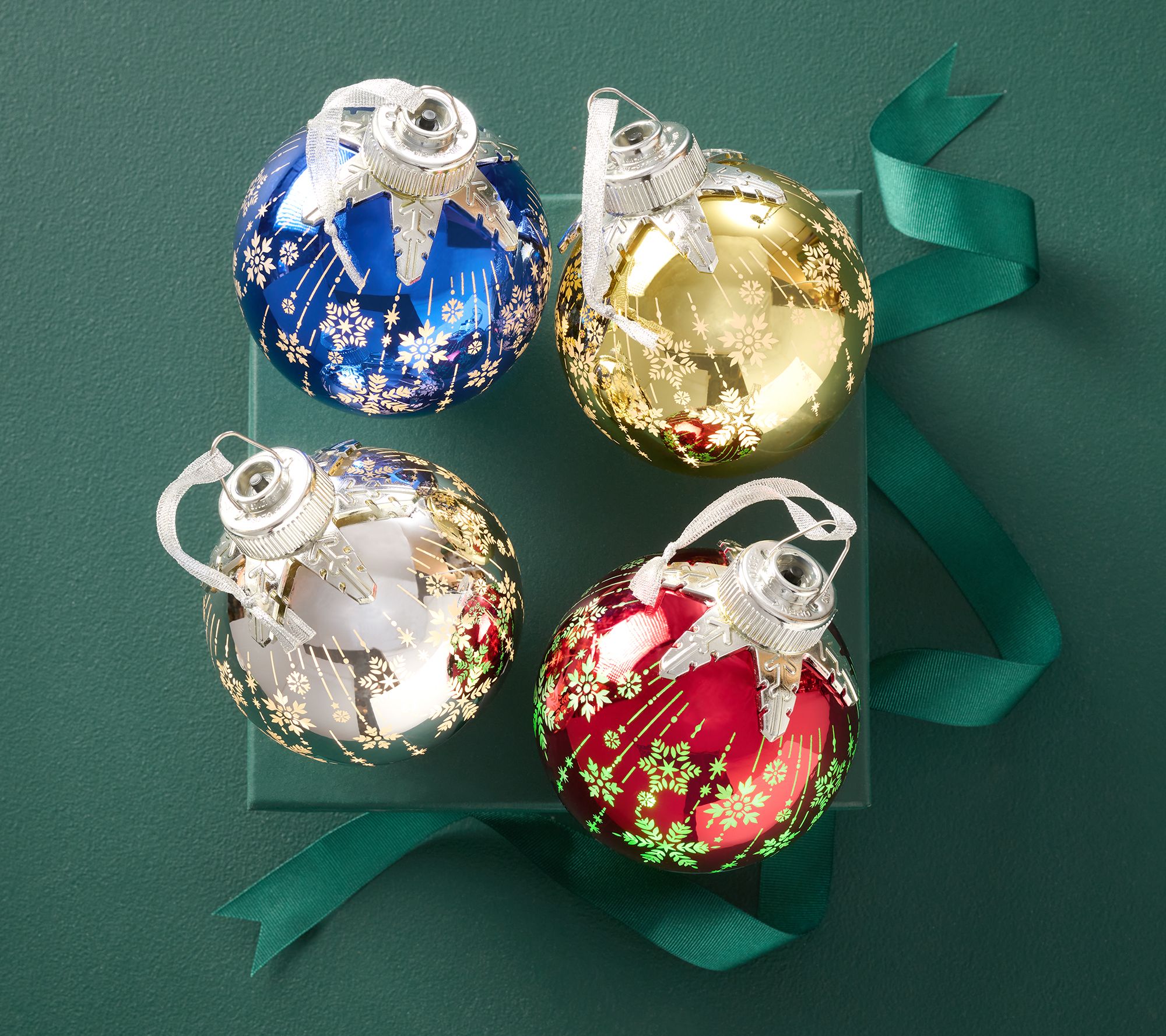 "As Is" Set of 4 Illuminated Snowflake Glass Ornaments by Valerie