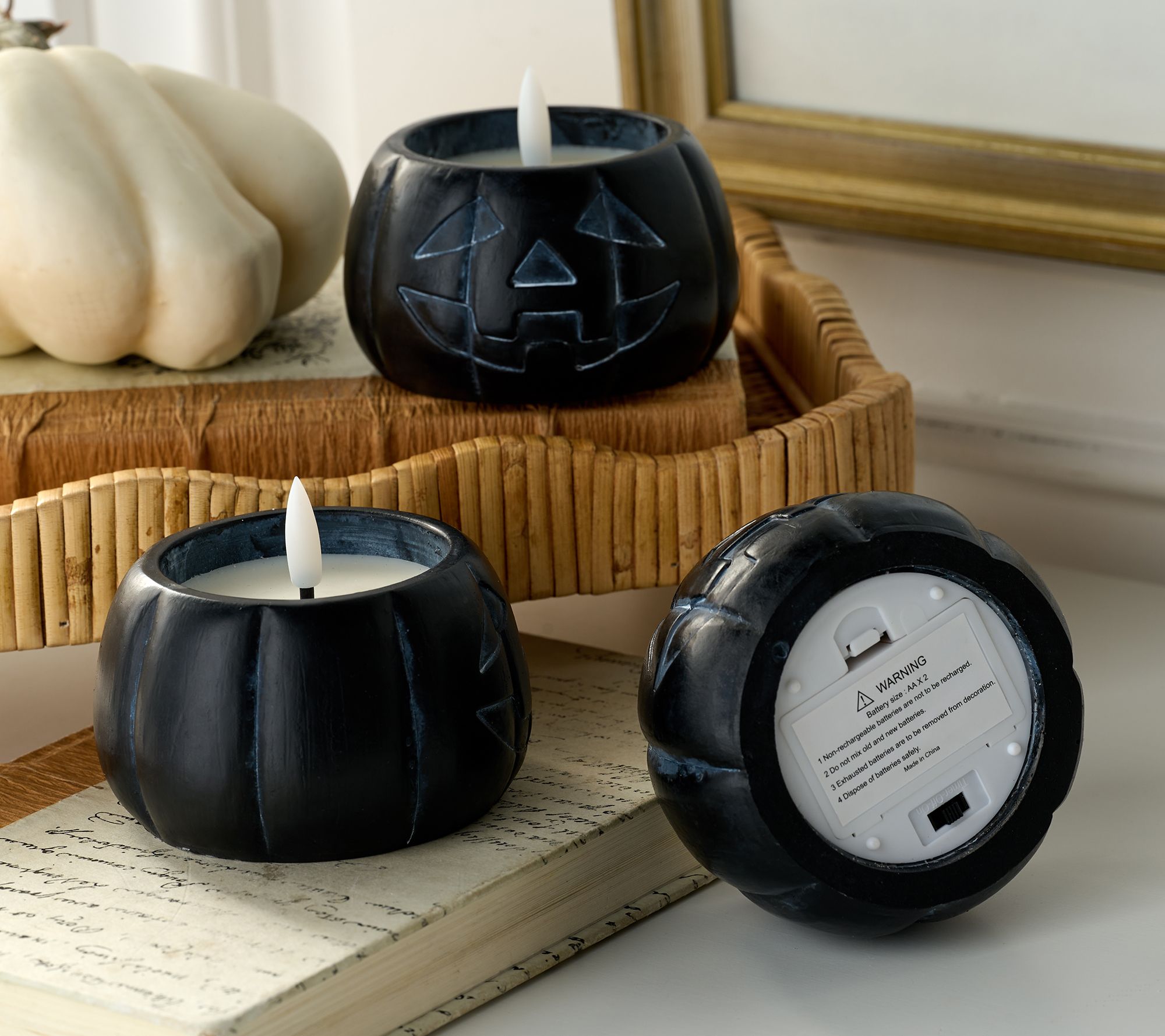 • Includes three pumpkin luminaries
