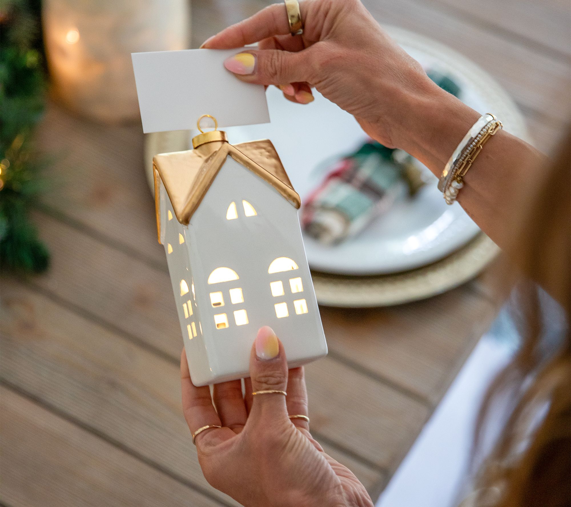 Holiday gatherings feel brighter with a display that draws everyone together. Scatter these softly glowing ceramic houses along a mantel, dining table, or as a centerpiece, letting each one softly illuminate handwritten notes, place cards, or even holiday wishes. With an easy timer setting, your cozy village springs to life every evening -- no extra effort needed. From Lauren McBride.