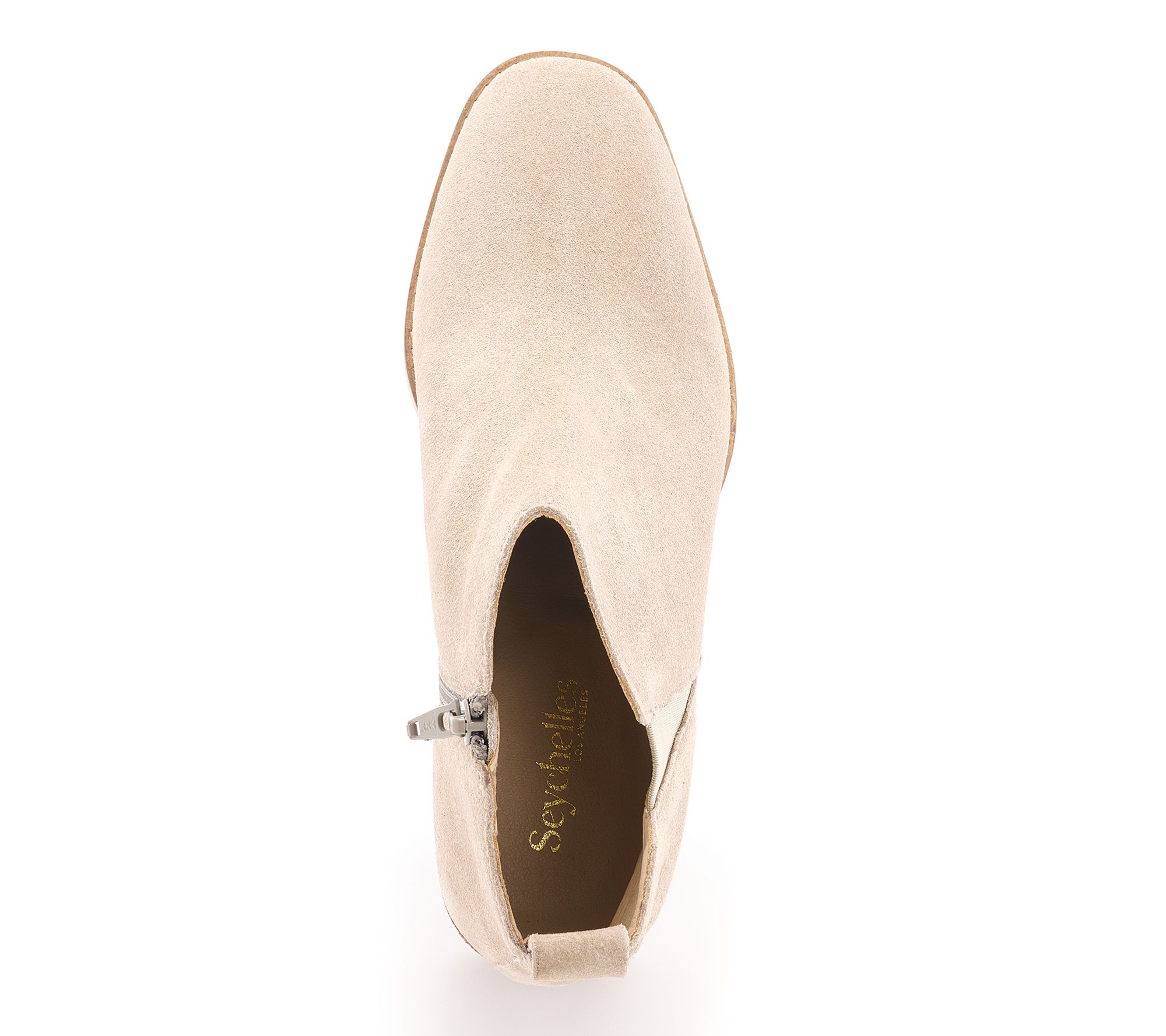 • Smooth leather or suede upper, round toe, elastic gore, inside zipper