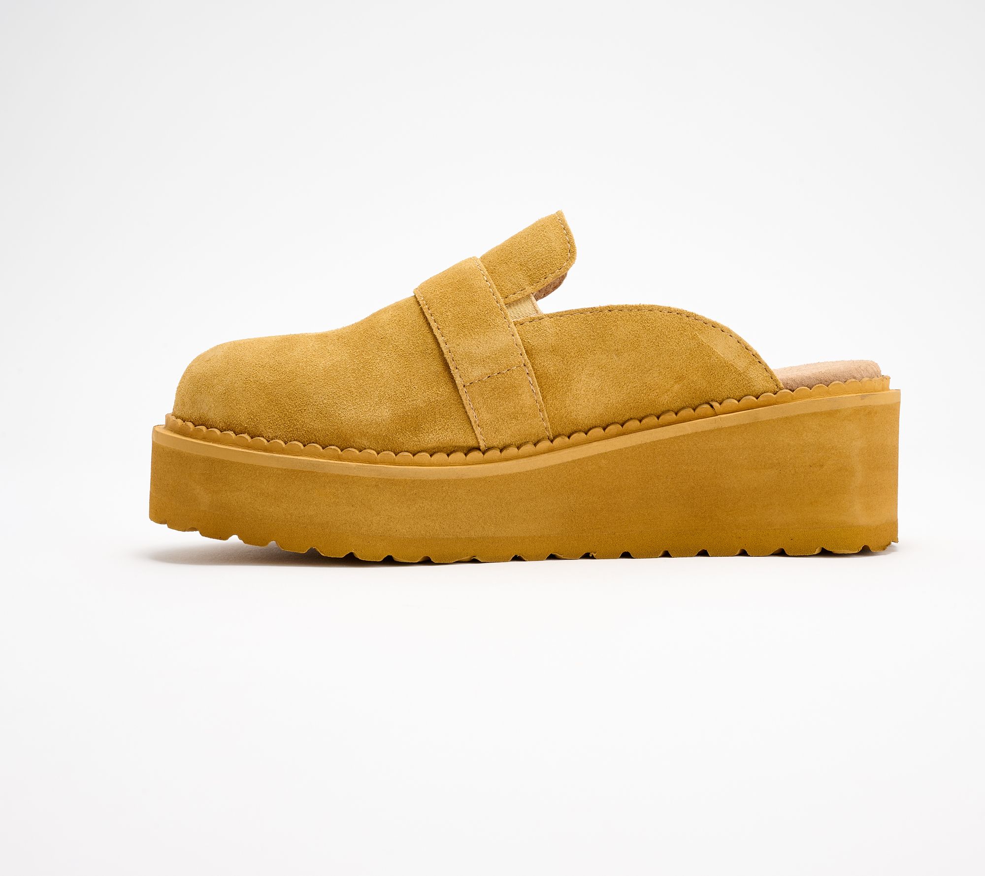 • Mule style, platform sole, buckle detail
