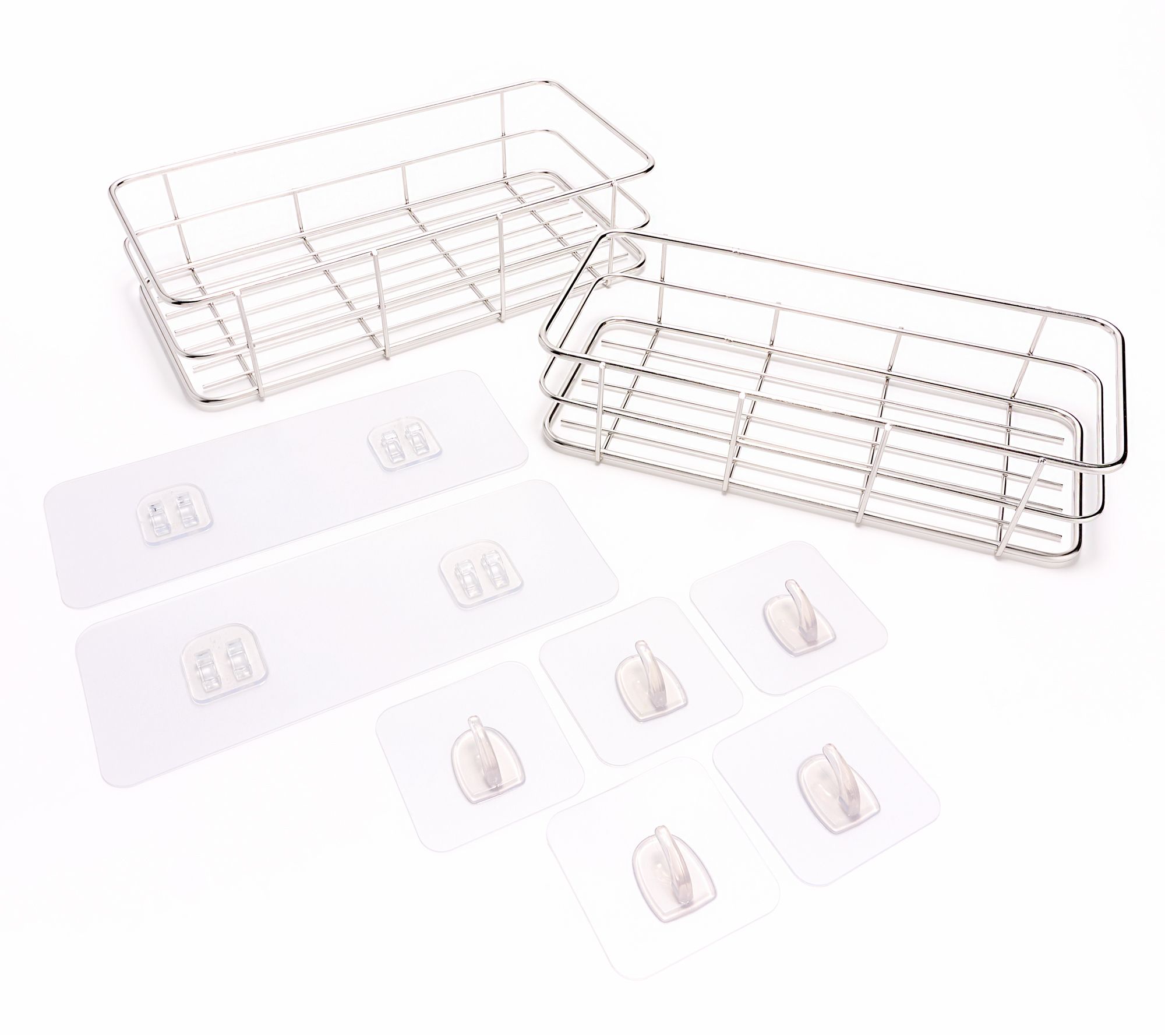 Showers and sinks -- they live a shelf-less life. Let's change that with this set of wall caddies! Just stick the (resusable) hooks to a flat, non-porous surface, hang the caddy, and organize your essentials for handy convenience. From SFIXX.