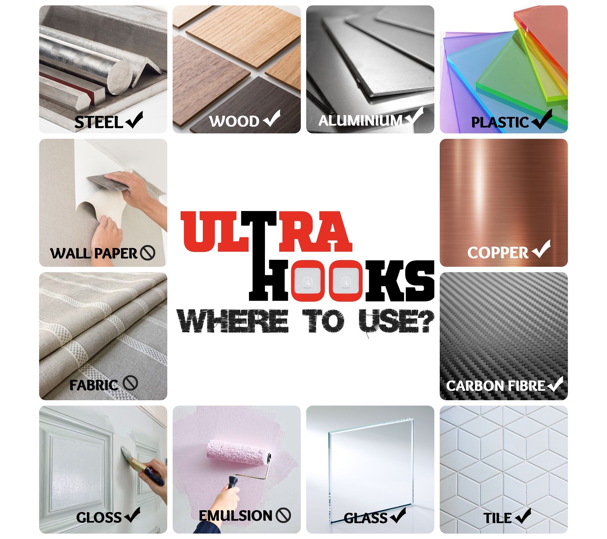 • Includes large and small wall caddies and five large ultra hooks