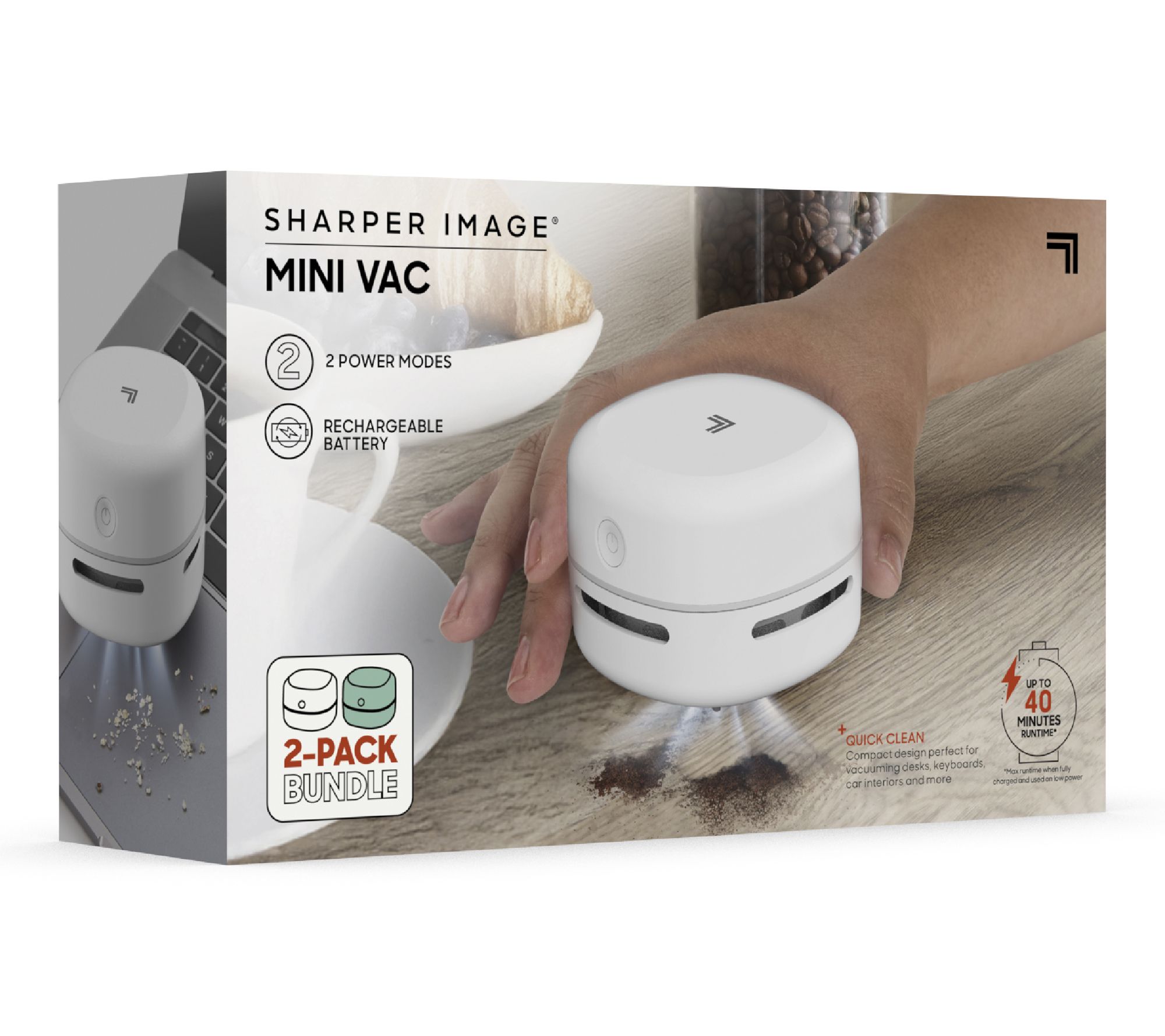 Tidy up wherever mess happens with this set of two mini vacuums -- compact enough to stash in a drawer or glove box (or even your handbag!). Crumbs, coffee grounds, or pet hair vanish fast thanks to cordless portability, two cleaning modes, and an easy-empty dust bin, making everyday messes in your kitchen, office, or car a breeze to tackle. From Sharper Image.